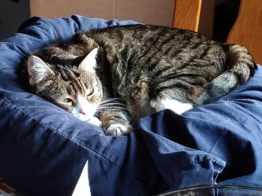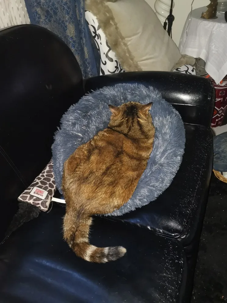 Подушка немного неустойчивая, кошка в ней скатывалась на бок, а в конечном итоге вообще отказалась в ней сидеть.