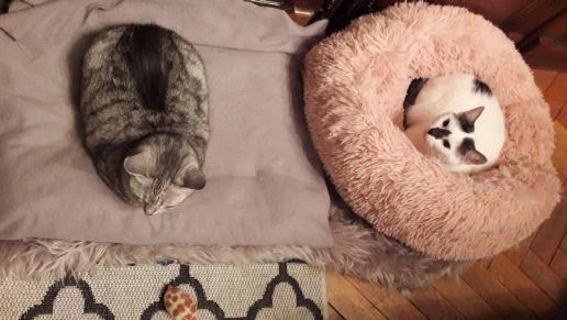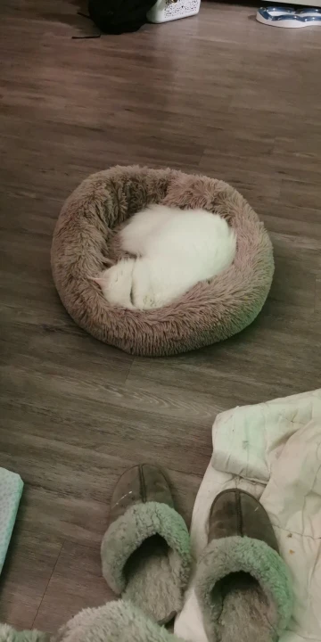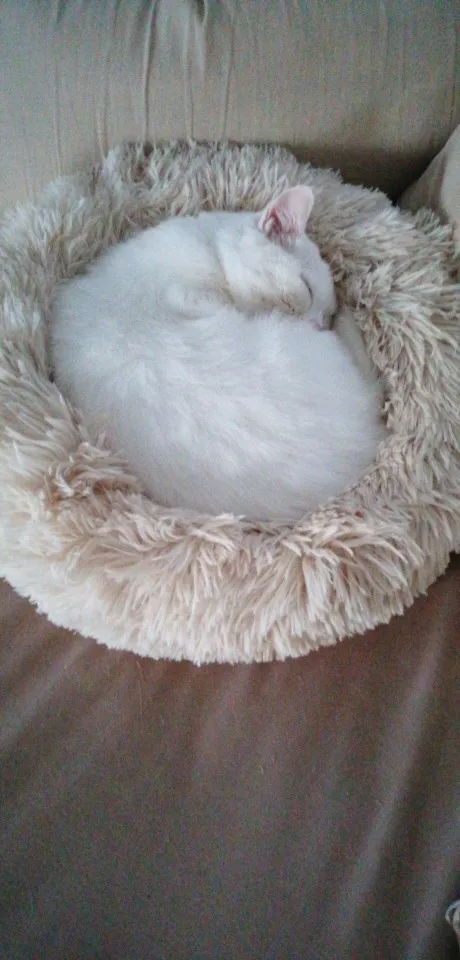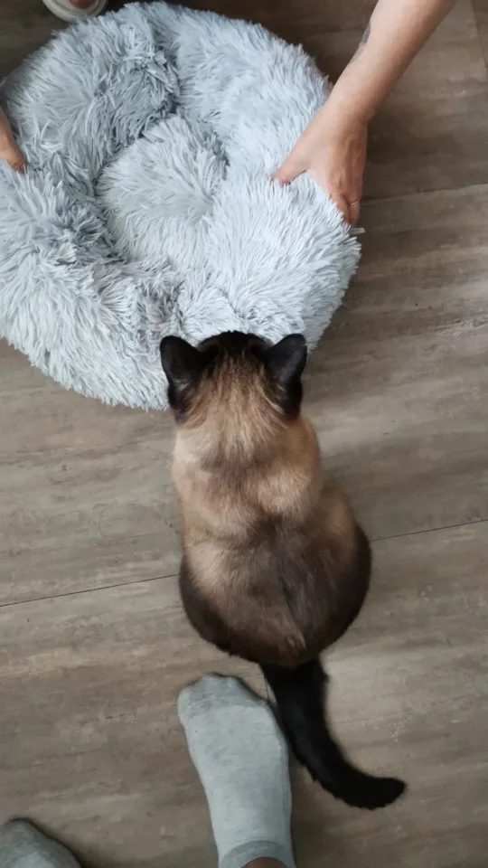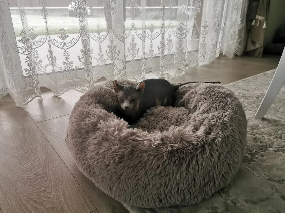 лежак шёл очень долго, хотя в итоге я наконец получила его, очень мягкий, выглядит круто и кошке вроде нравится