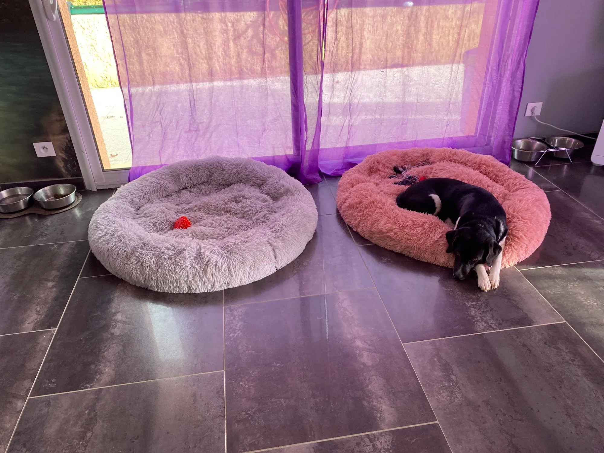 I have bought the 100 cm diameter XL bed for my 30 kg Irish setter, he is so comfy, using it all the time, doesn’t want to go to the bed or the sofa with me. That was the goal!! Arrived in 3 weeks to Hungary.