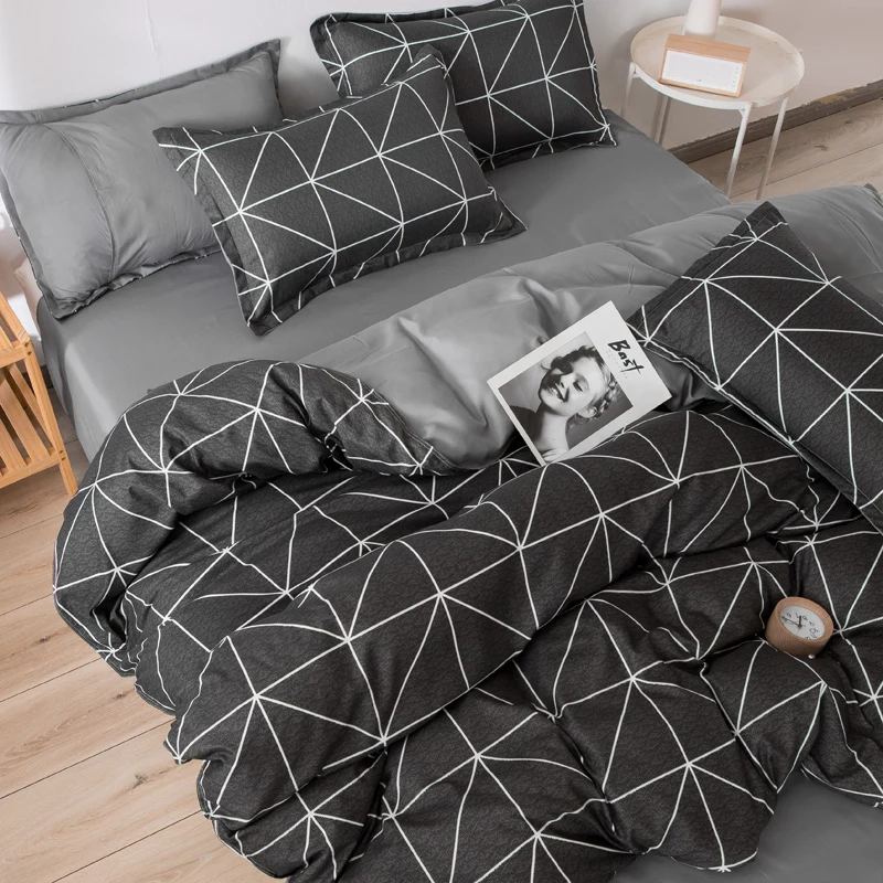 Черные Геометрические линии в скандинавском стиле, 4 предмета, семейное покрывало для кровати, пододеяльник, простыни и наволочки для взрослых и детей, одеяло