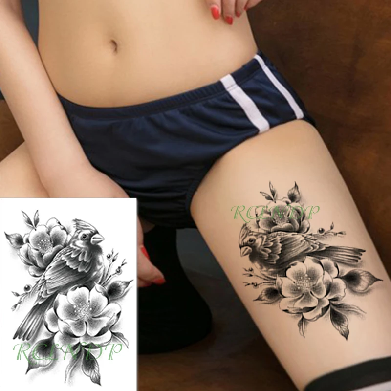 Водостойкая Временная тату-наклейка, птица, роза, искусственная тат...