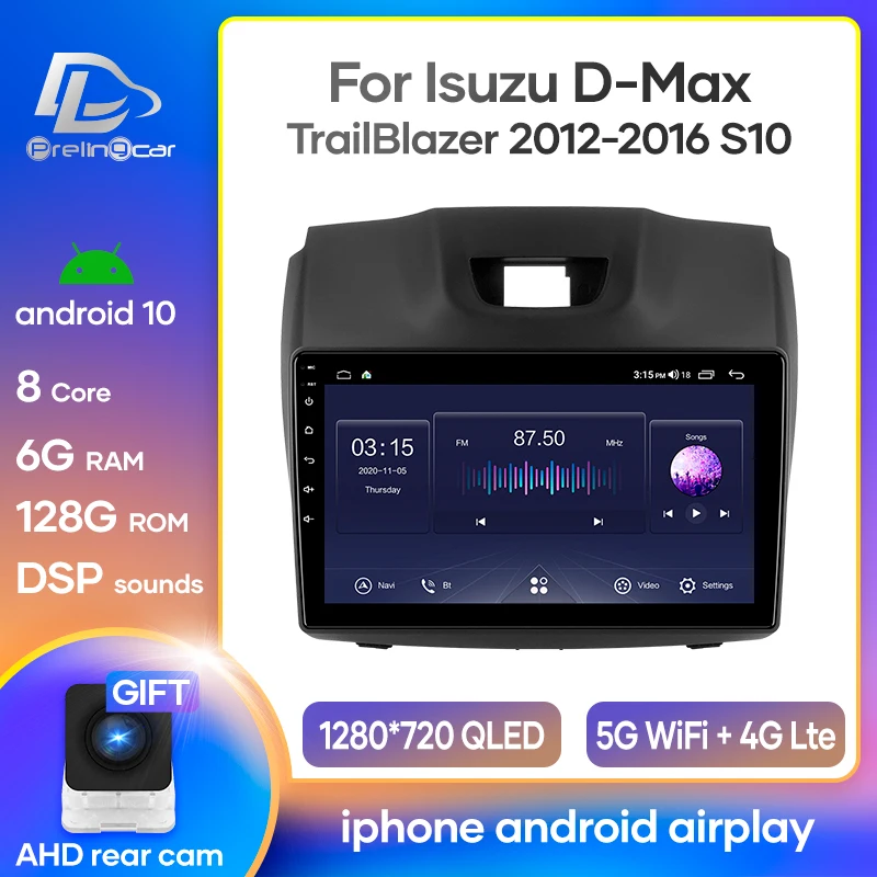 Автомобильная Мультимедийная система Prelingcar, автомагнитола под управлением Android 10, с GPS Навигатором, для Isuzu D-Max, Chevrolet TrailBlazer S10, Колорадо