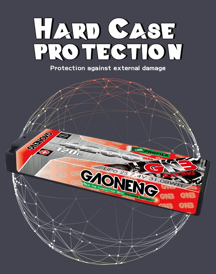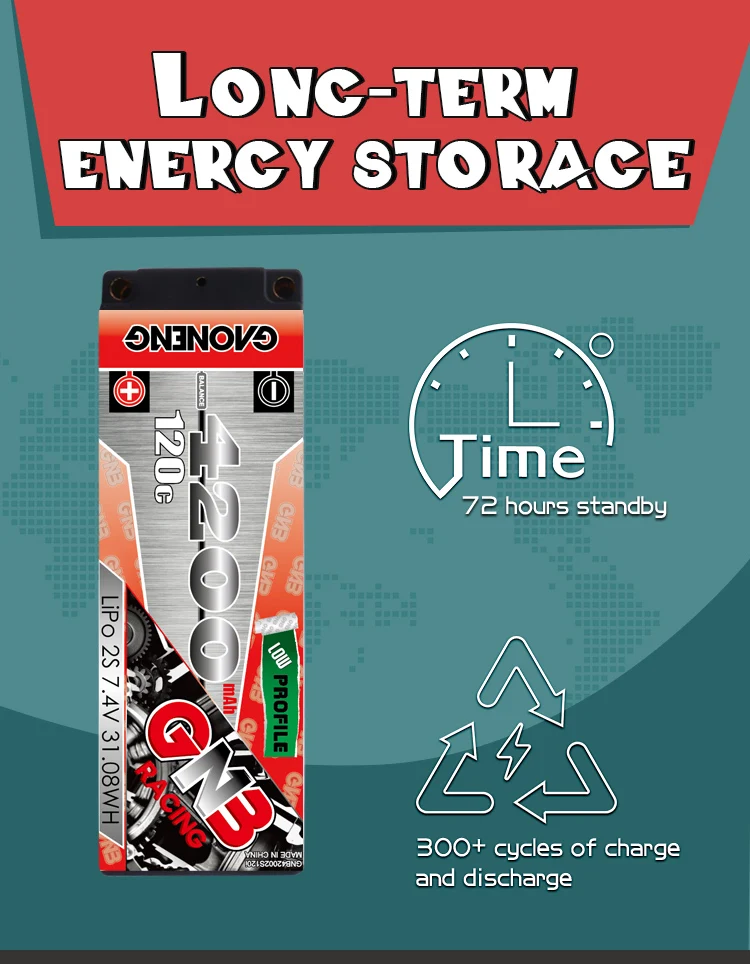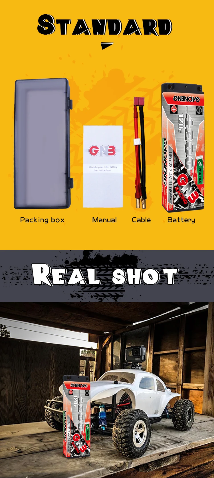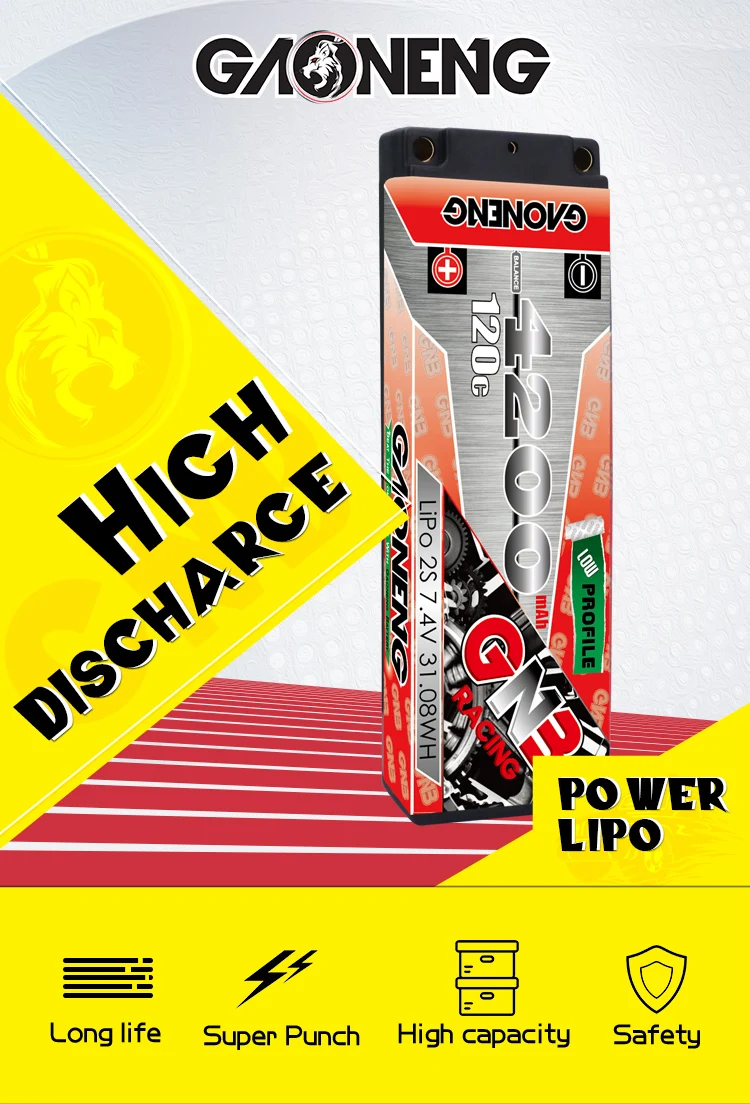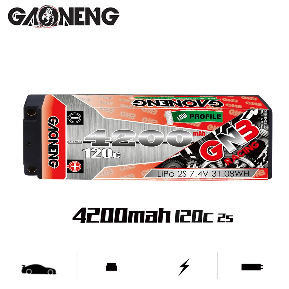 Перезаряжаемый литий-полимерный аккумулятор XT60T Gaoneng GNB 4200 мАч 120C 2S 7,4 В PLUS для радиоуправляемого автомобиля, лодки 1:10
