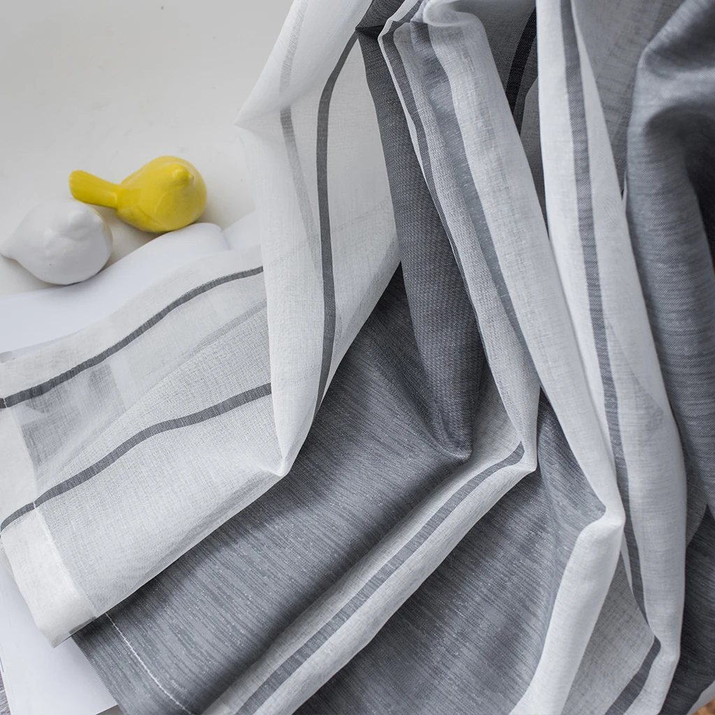 Серые полосатые вуаль тюлевые шторы для гостиной, спальни, современ...