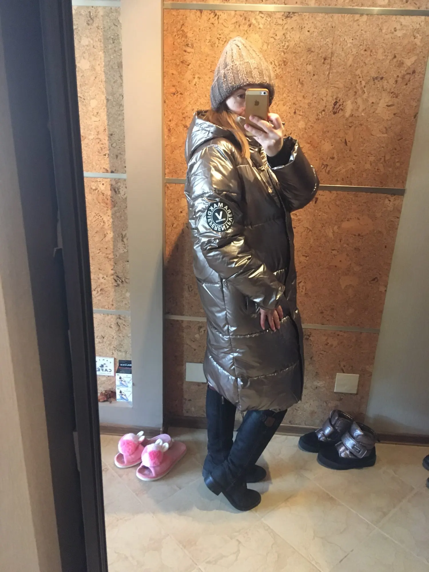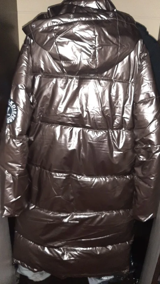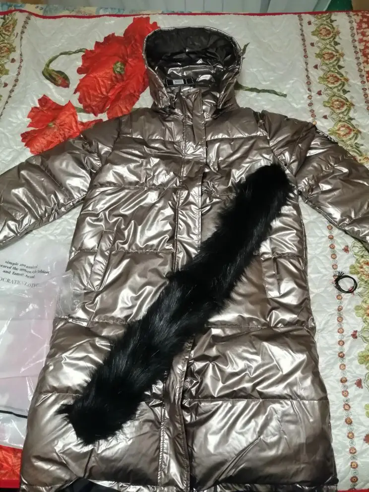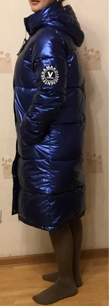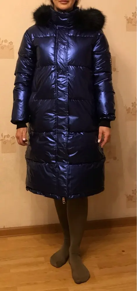 Очень довольна покупкой. Пальто просто супер. Материал какой-то прорезиненный что ли, не могу точно объяснить. На ощупь приятный. Цвет тёмный графит с металлическим отблеском, не серебряный. Но мне очень нравится. Запах посторонний присутствует, но я думаю выветрится быстро,так как не резкий. Мех искусственный, но смотрится очень достойно. Очень рада что не искусственный енот. Нашивка на рукаве ни чуть не портит общей картины. По длине, как я и хотела ниже колена с моим ростом 165см. Брала для зимних прогулок с ребенком. На российском 48-50 взяла XXL, не впритык, свободно. Под низ можно одеть толстый теплый свитер)) как и планировала. Ворот у пальто высокий, так что закрывает горло и не "душит". Пошив прекрасный, не нашла до чего докопаться. Все швы ровные,нет дыр, торчащих ниток и т.д. Все ровно,включая молнию. Из минусов только доставка...и то это проблема нашей почты. Так как заказывала 11.11, в двадцатых числах уже прибыла в страну назначения и до 08.12 посылка была на таможне.