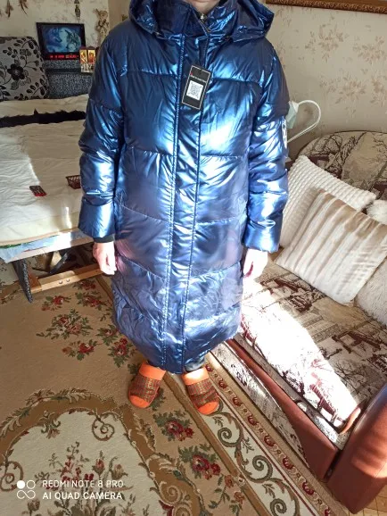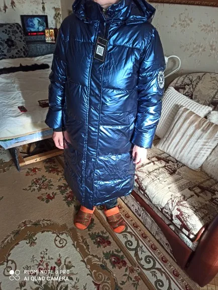 Пуховик такой же красивый, как на фото (цвет яркий и насыщенный). Металлик при смене освещения отливает по-разному (от черно-синего до светло-голубого, светло-синего). Материал пуховика, а именно внешняя, видимая его часть, очень интересная, на ощупь похожа на водоотталкивающую плащевку Швы прострочены качественно, нитки нигде не торчат Пуховик теплый, но для сильных морозов не подойдет. До -20 не мерзнешь, но с конкретно теплым свитером На рост 175, размер одежды 46-48 заказала 2XL (сидит свободно), но если хочется, чтобы пуховик был действительно оверсайз то лучше взять 3XL (но это будет большой пуховик) Пришел немного с задержкой Упакован аккуратно, немятый, запаха не было Также лежал маленький бонус -резиночки; мелочь, а приятно Общее впечатление, мне понравился очень. Выглядит стильным и дорогим. Для морозов в моем городе подходит, не мерзнешь. Рада, что выбрала именно его)