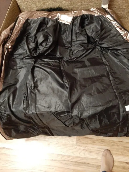 Доставка в течение двух недель. Обхват груди 1,04, обхват бедер 1,10 м. Это очень теплое пальто. Размер хороший. Молния может быть открыта под и выше. Подходит для велосипеда. Я очень доволен этим пальто.