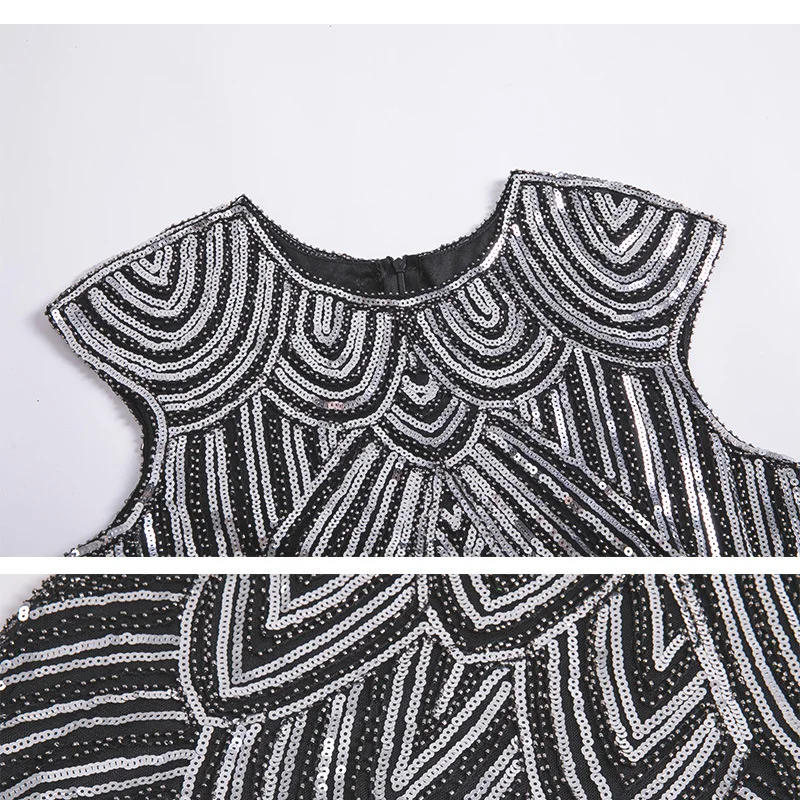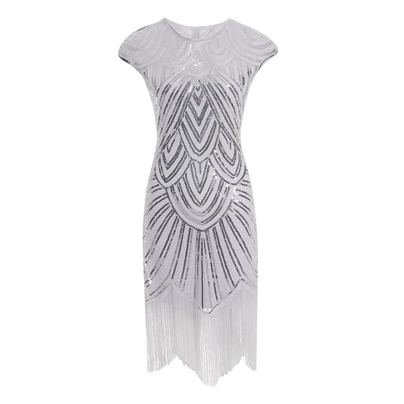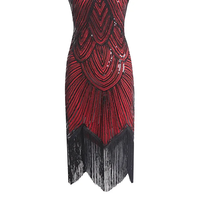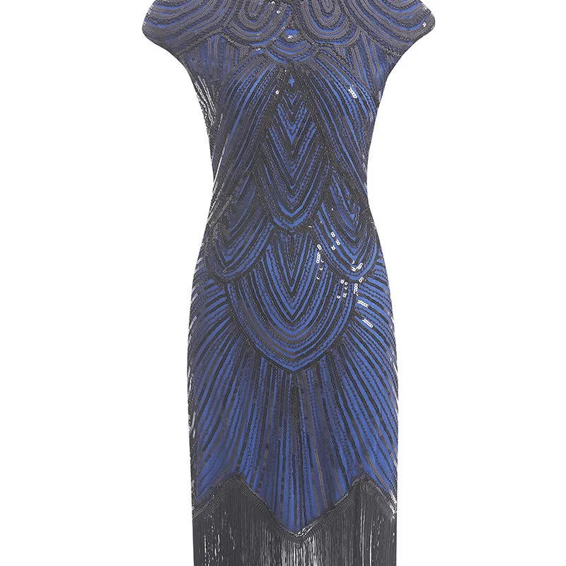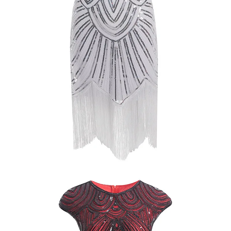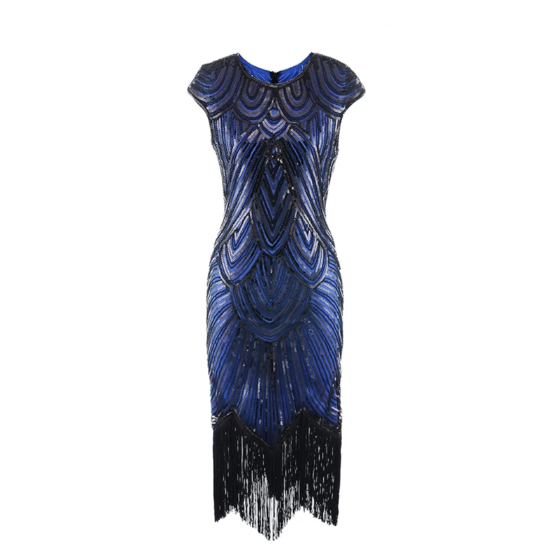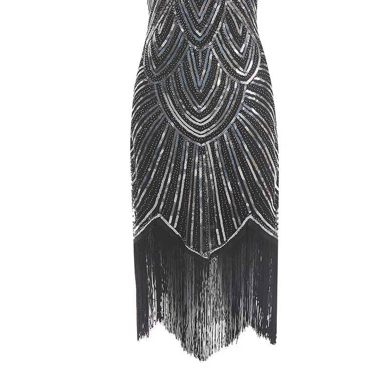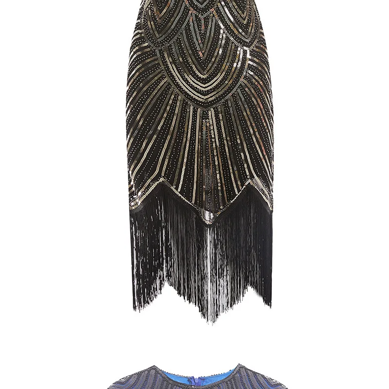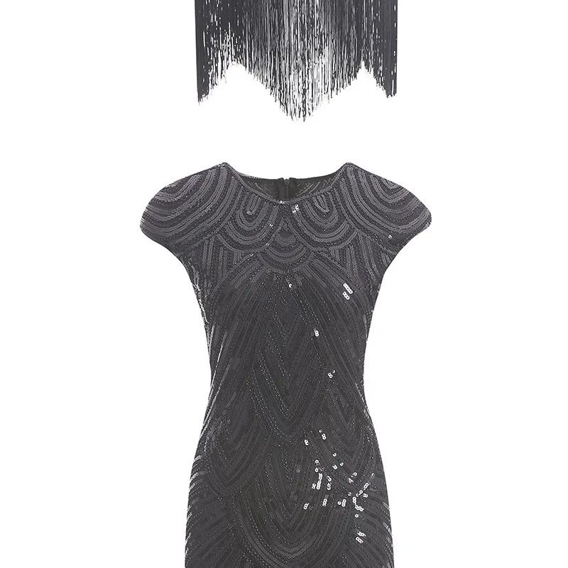 Винтажное платье в стиле Грейт Гэтсби 1920s, вечернее платье миди с О-образным вырезом, рукавами-крылышками, блестками и бахромой, летнее платье 2019