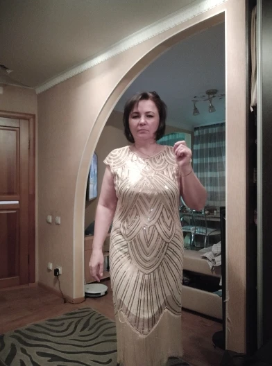 Качество неплохое, на рост 172 длина с кистями ниже колен см на 15, по мне длинновато. На российский 50-52 свободное, можно было и поменьше, полнит, подклад короче платья сантиметров на 10, некрасиво и пройма в подмышках глубокая тоже не очень красиво. Покупала для танцев, мне не очень подошло, но в общем платье хорошее за такую цену.