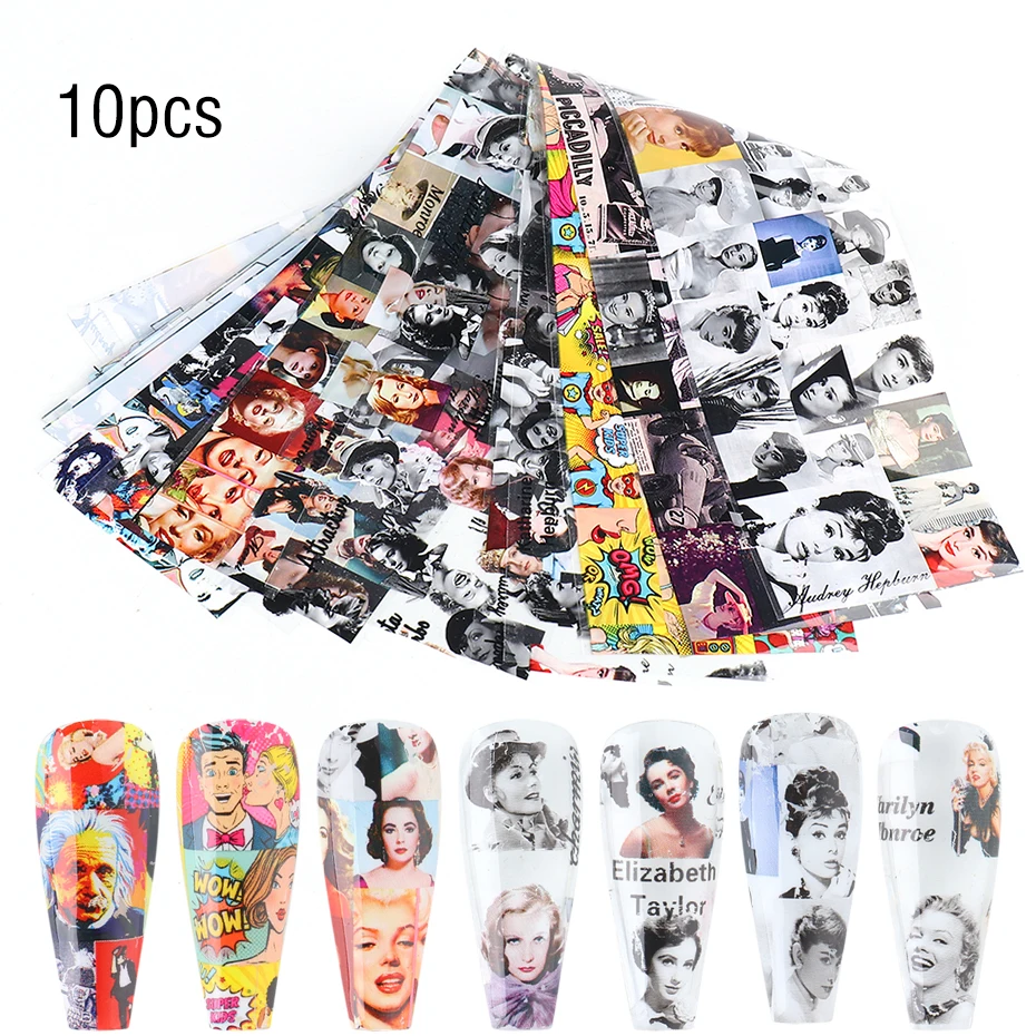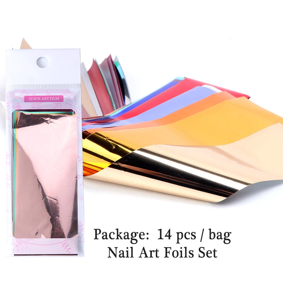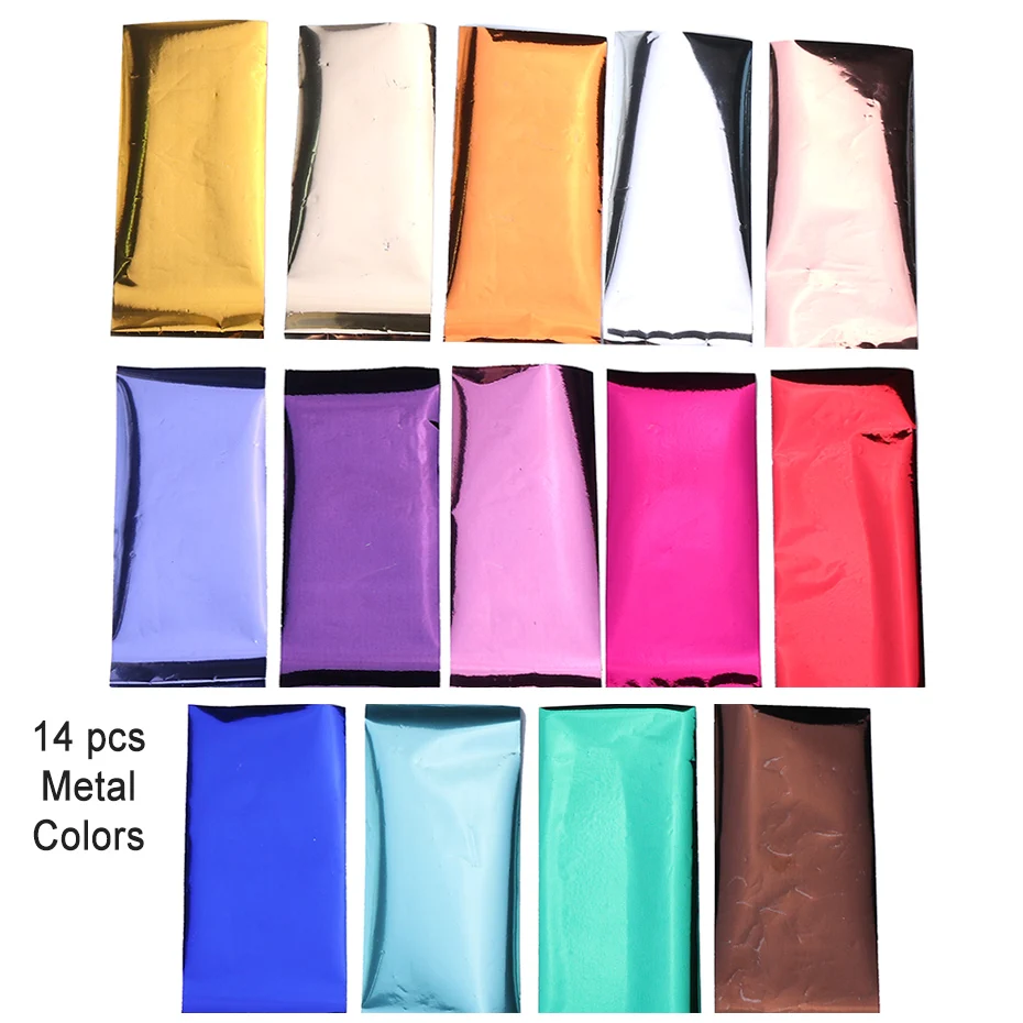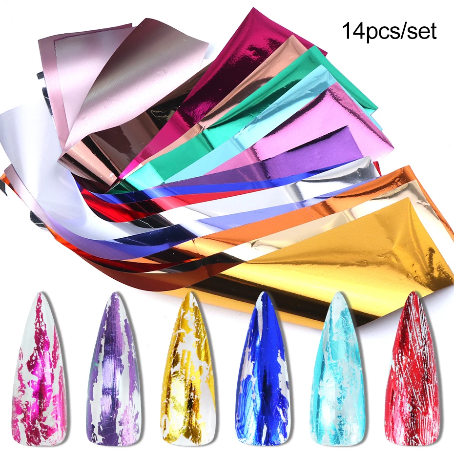 14 шт. металлическое зеркало Голографическая фольга на ногти металлический цвет ногтей Наклейка Звездная бумага Переводные Советы маникюрные украшения LY996-1