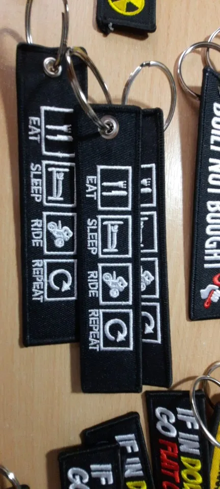 Новинка 3 шт.лот брелок для ключей с вышивкой Съешь и спать цепочка для ключей Украшение Брелок для мотоциклов и автомобилей брелок для ключей для мужчин