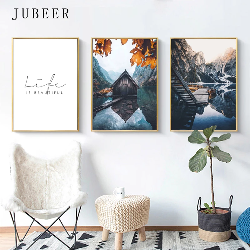 Картина с изображением горы, озеро с водопадом, плакат в скандинавском стиле, в скандинавском стиле, с изображением природы, настенная живопись, современное оформление комнаты