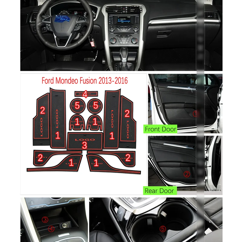 Anti-slip Door Cup Cushion Groove Mats for Ford Mondeo Fusion