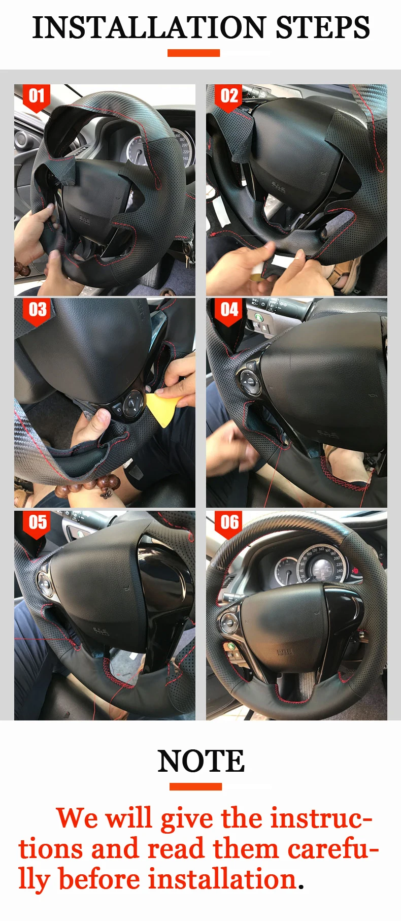Посылка содержит:1 чехол на руль,1 игла,1 нить,1 Двусторонняя лента,1 скребок.Пожалуйста, не снимайте оригинальную кожу!Примечание:1. Пожалуйста, дважды проверьте, что ваш Автомобильный руль такой же, как на нашей фотографии. Если то же самое, вы можете купить его. Если нет, предоставьте свое изображение рулевого колеса в службу поддержки клиентов.2. Материал изделия: Искусственная кожа (из микрофибры высокой плотности).3. Если вам нужна индивидуальная Настройка, пожалуйста, свяжитесь со службой поддержки клиентов.4. Пожалуйста, не снимайте оригинальную кожу! Если требуется разборка, пожалуйста, предоставьте размер или свяжитесь со службой поддержки клиентов.Если у вас есть какие-либо вопросы, пожалуйста, свяжитесь с нами, мы своевременно ответим на ваши вопросы.