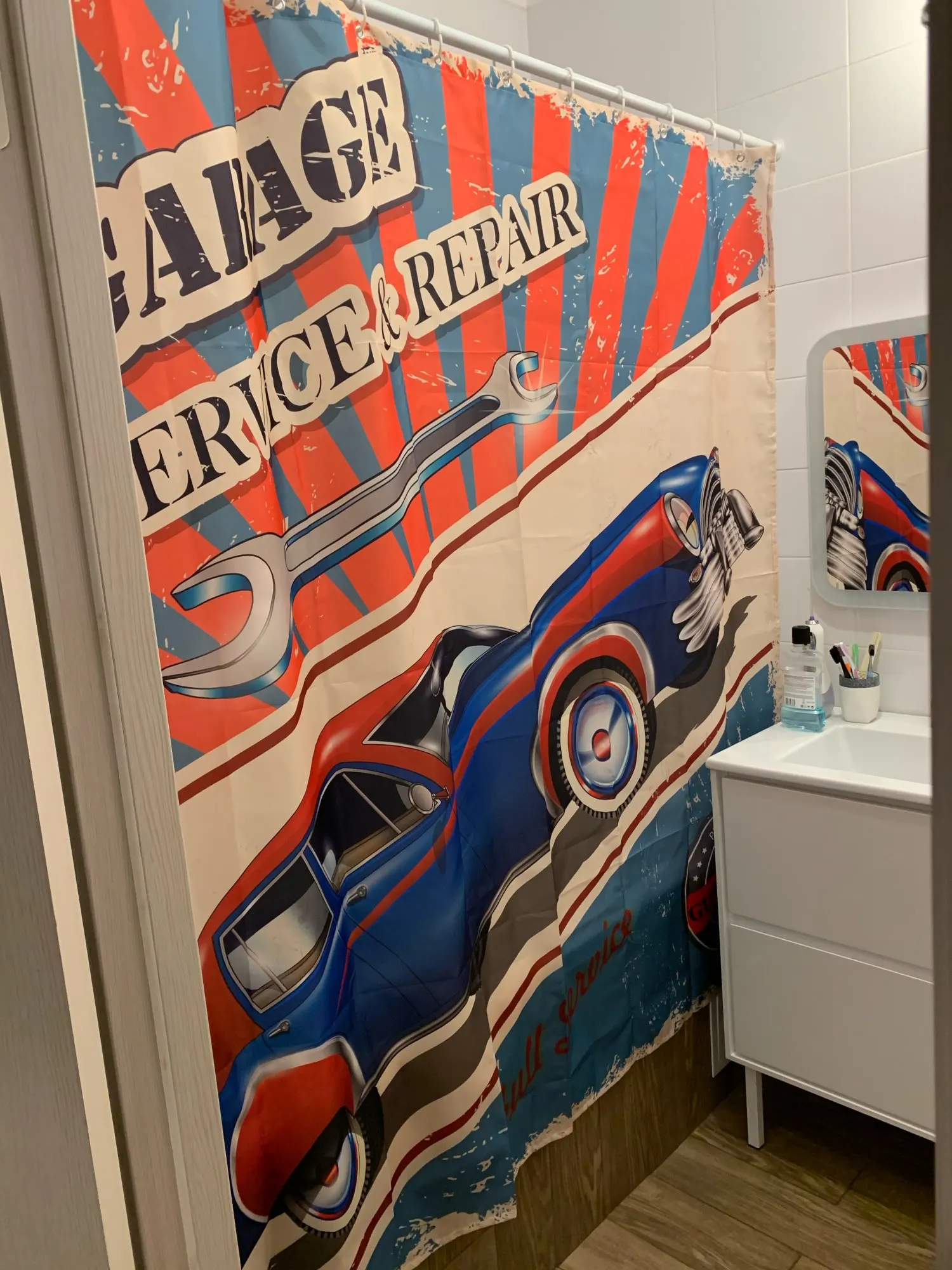 Размер душевой занавески:90 см Ш X 180 см в (с 7 отверстиями)150 см Ш X 180 см в (с 10 отверстиями)180 см Ш X 180 см в (с 12 отверстиями)180 см Ш X 200 см в (с 12 отверстиями)180 см Ш X 210 см в (с 12 отверстиями)180 см Ш X 240 см в (с 12 отверстиями)230 см Ш X 180 см в (с 15 отверстиями)240 см Ш X 180 см в (с 15 отверстиями)1. Изготовлен из 100% полиэфирного волокна; Антибактериальный, водонепроницаемый, защита от плесени, безопасный и экологически чистый2. Размер 70x70 дюймов (180*180 см) (настраиваемый размер), легко повесить 12 пластиковых крючков3. Новая, смелая и не маркирующая мода, индивидуальность, Ретро стиль, простой, милый, красочный, без пигментов, не вредит здоровью вашей семьи, подходит для молодых людей и детей4. Машинная стирка, ручная стирка, холодная стирка, естественная сушка