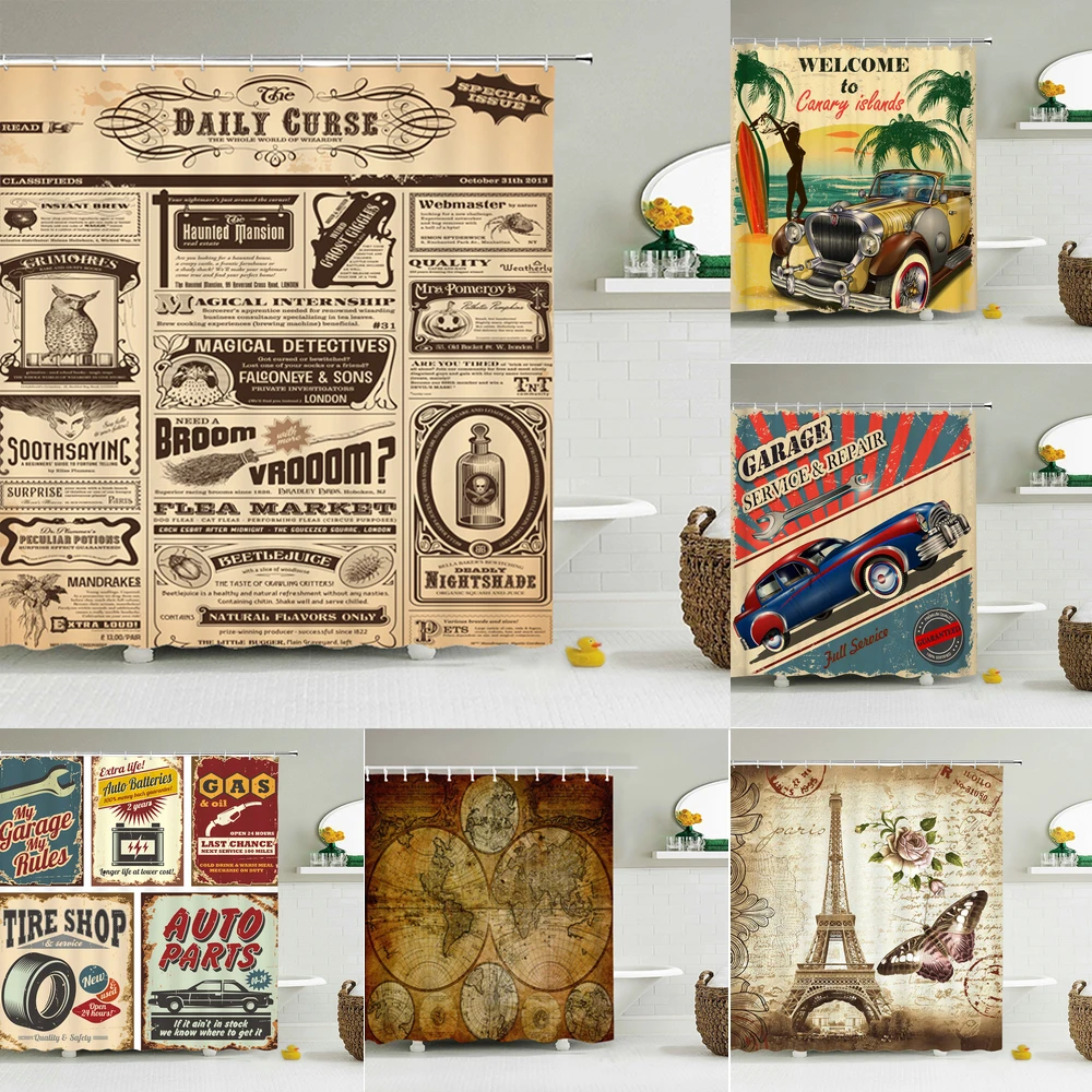 Забавная Ретро винтажная Автомобильная душевая занавеска s, водонепроницаемая занавеска для ванной комнаты, Штора для ванной комнаты из газеты, Высококачественная душевая занавеска