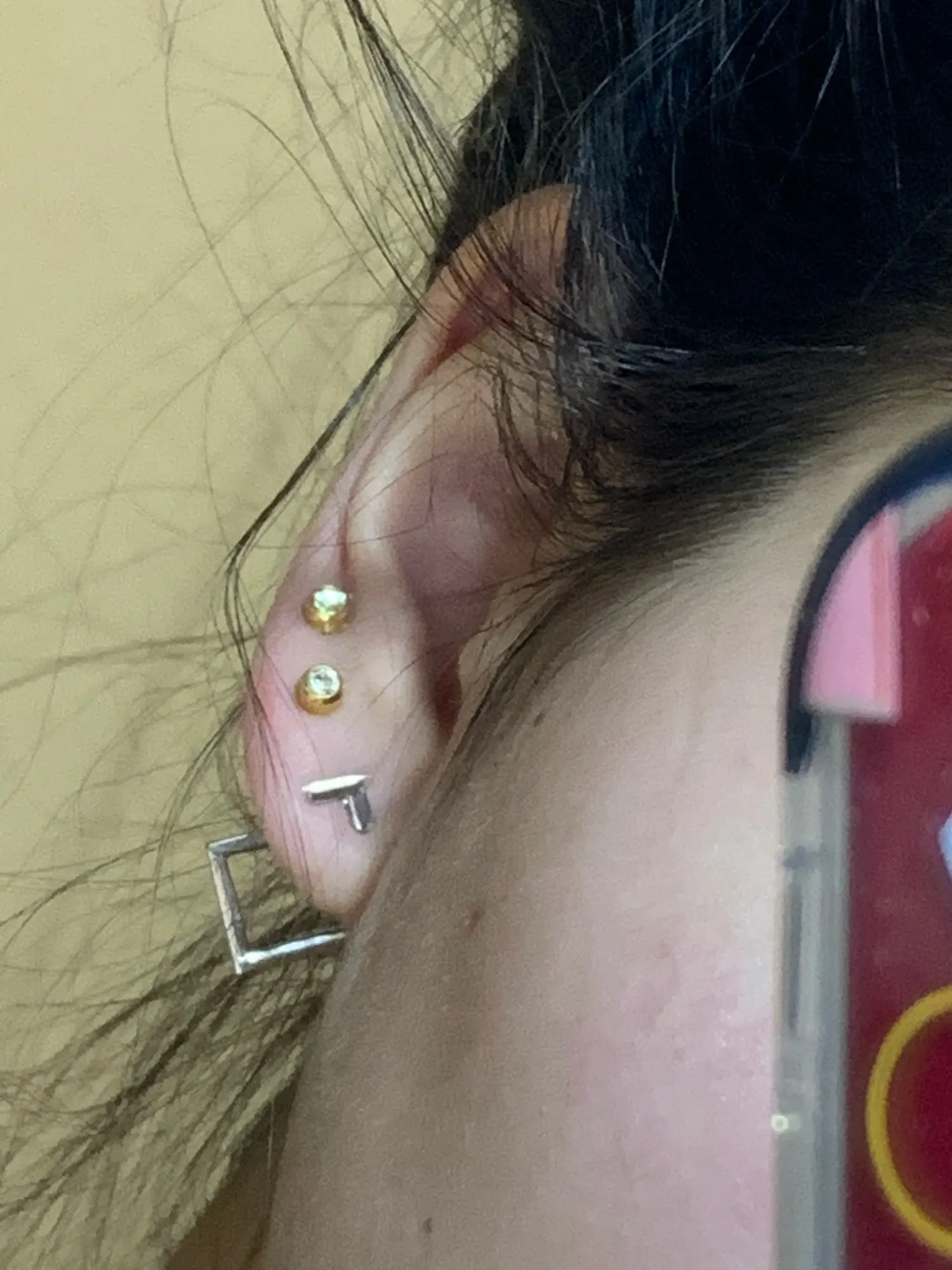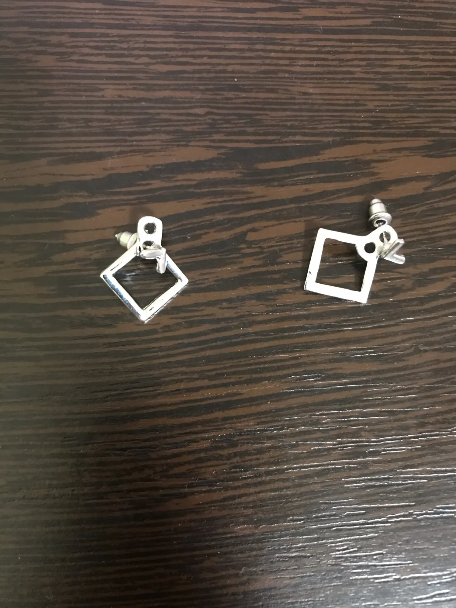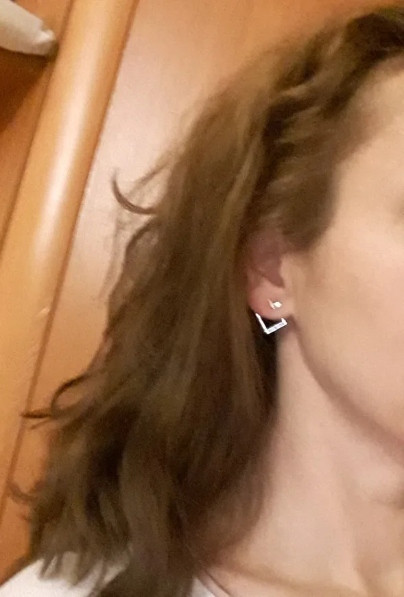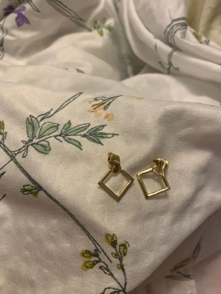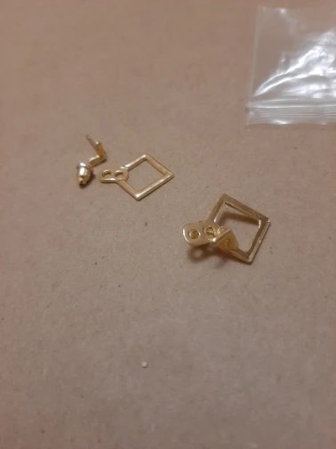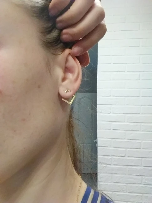 Быстрая доставка, в Красноярск за 16 дней! Серёжки аккуратные, дефектов никаких нет, цвета золота, застежки достаточно тугие. Ромбик если не надевать, то получается второй комплект - маленькие гвоздики-галочки)) За свою цену очень приличного качества. Рекомендую к покупке