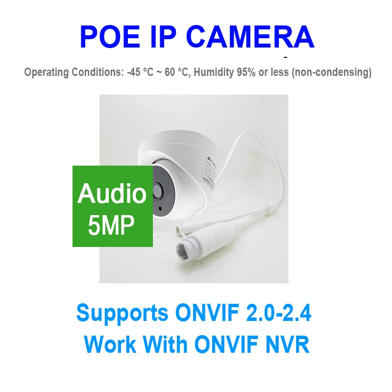 Ip-камера XMeye, 5 Мп, с аудио, POE, HD, купольная, ночное видение, инфракрасная