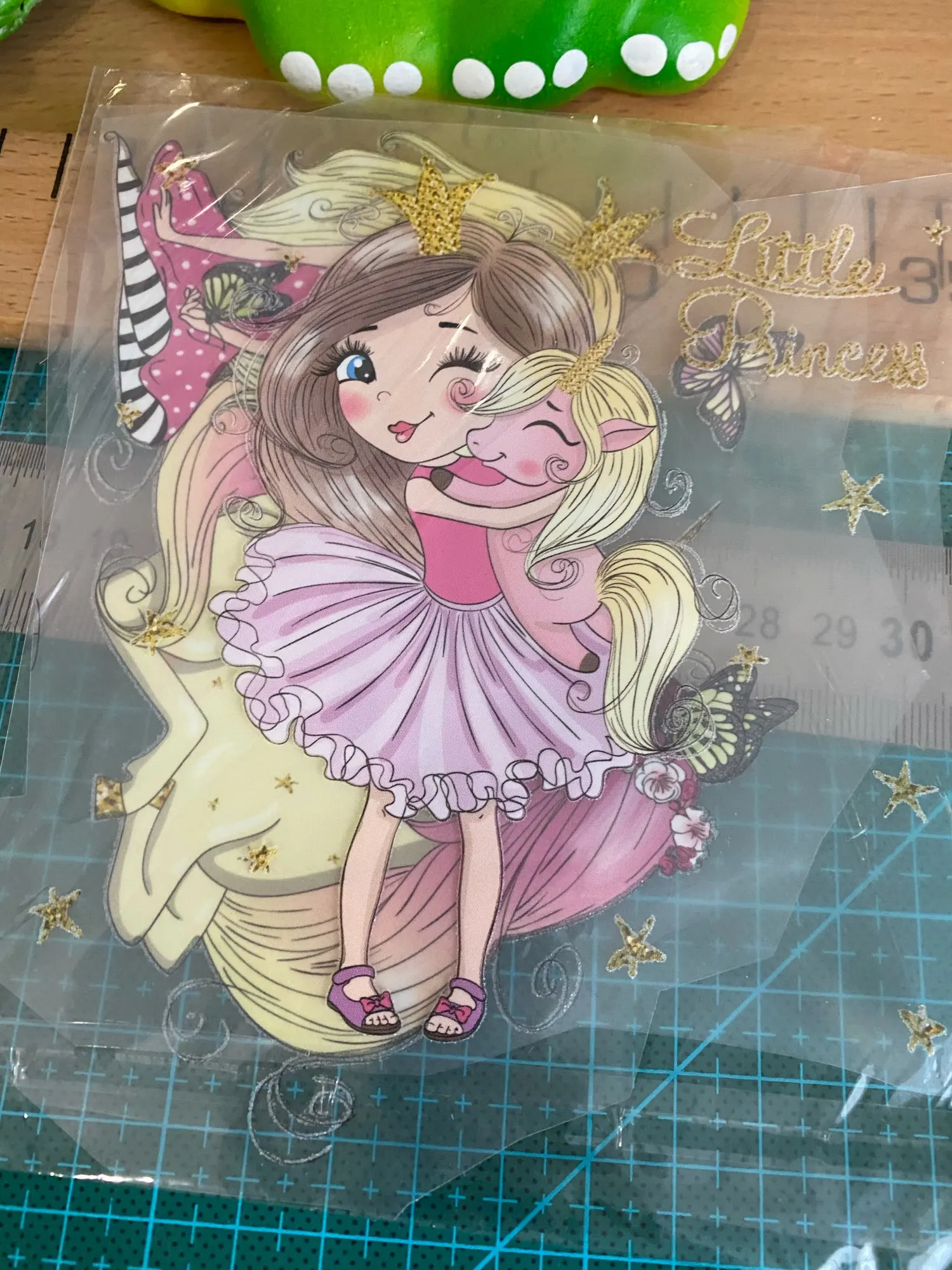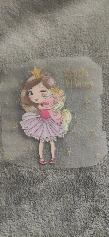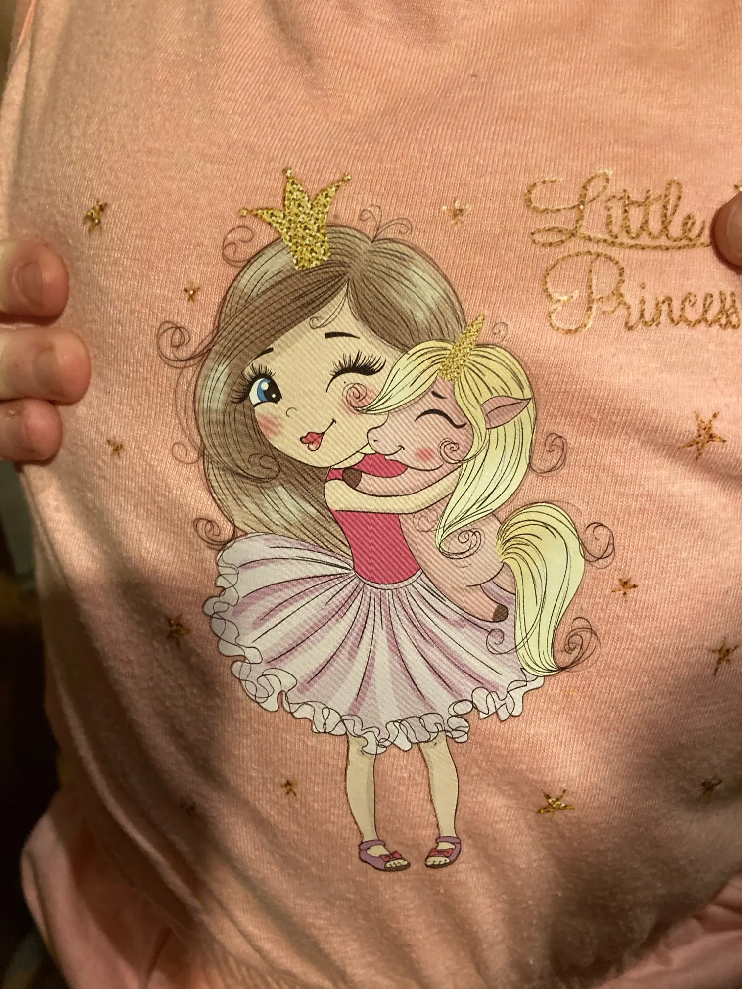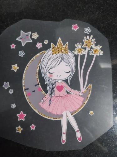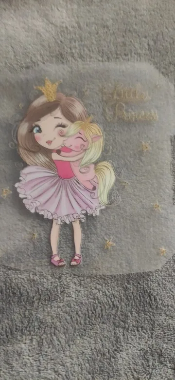 мила принцеса. Думала, що там блискітки на короні, зірочках та написі. Але ні, блискіток немає, просто колір щось типу "під золото". виглядає теж гарно. дякую доставка трохи більше місяця
