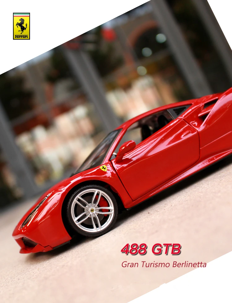 Модель автомобиля Bburago Ferrari 488 GTB 1:24, литой металлический модем, детская игрушка, подарок для парня, коллекция автомобиля из искусственного сплава