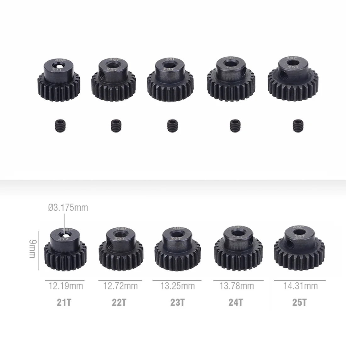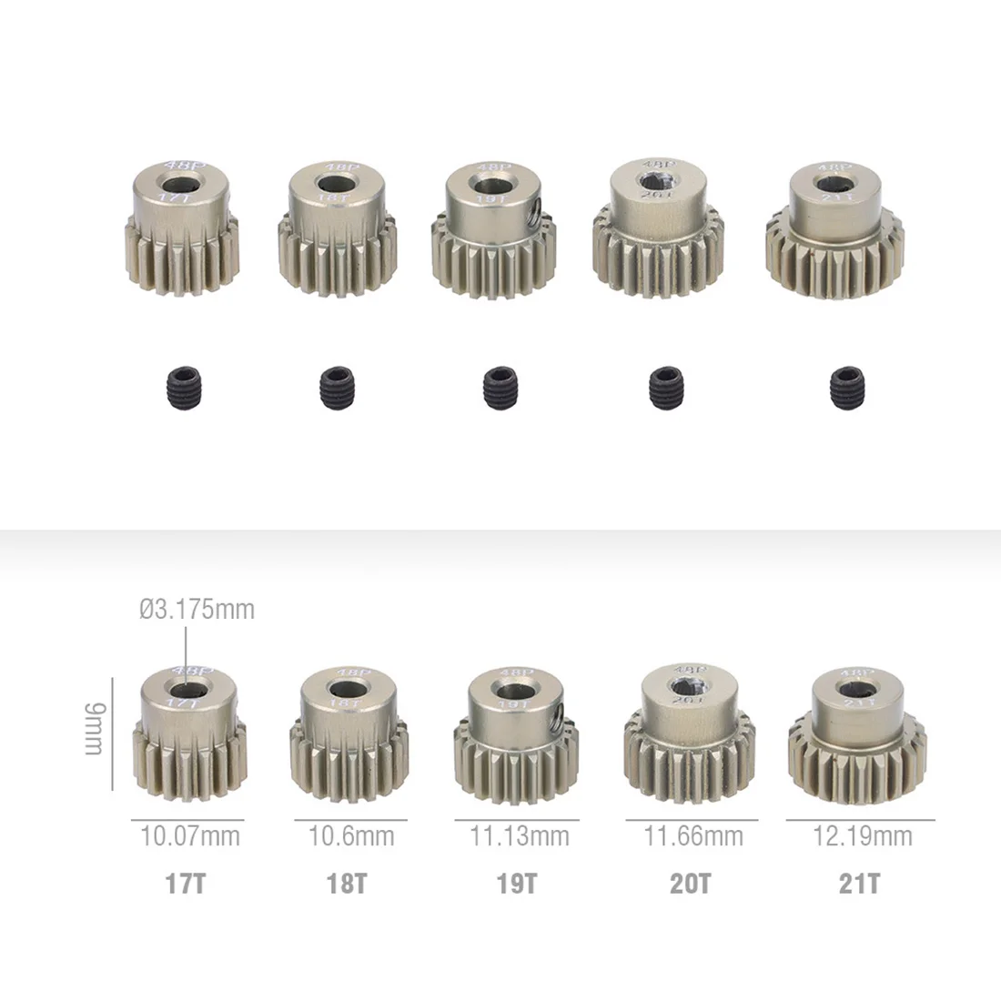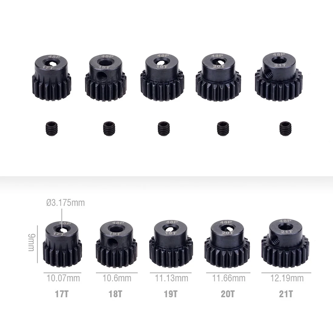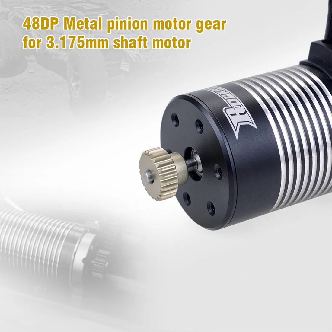 Шестерни 48DP изготовлены из металлической стали, по внутренним отверстиям есть положительные отверстия 0-0,03, крепежные отверстия для винтов M3;Простая установка и длительный срок службы;Твердое Анодирование поверхности шестерни;Антикоррозийная обработка поверхности шестерни;Бесщеточный двигатель с валом 3,175 мм для радиоуправляемой модели автомобиля 1/10 года;