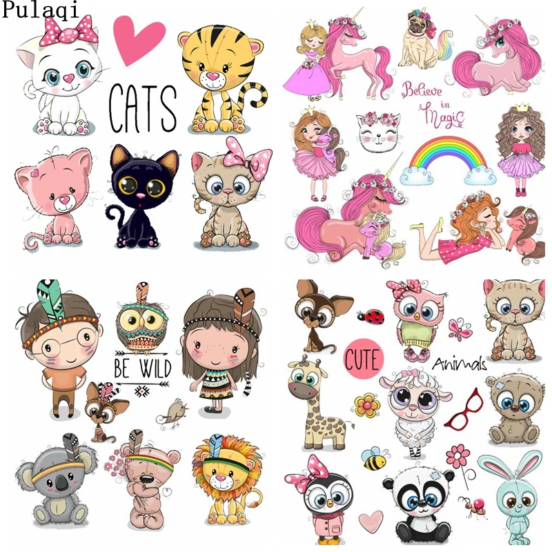 Pulaqi милые нашивки с животными, виниловые теплопередающие нашивки для одежды, наклейки с утюгом на переводе, аппликация на одежду, футболка в полоску