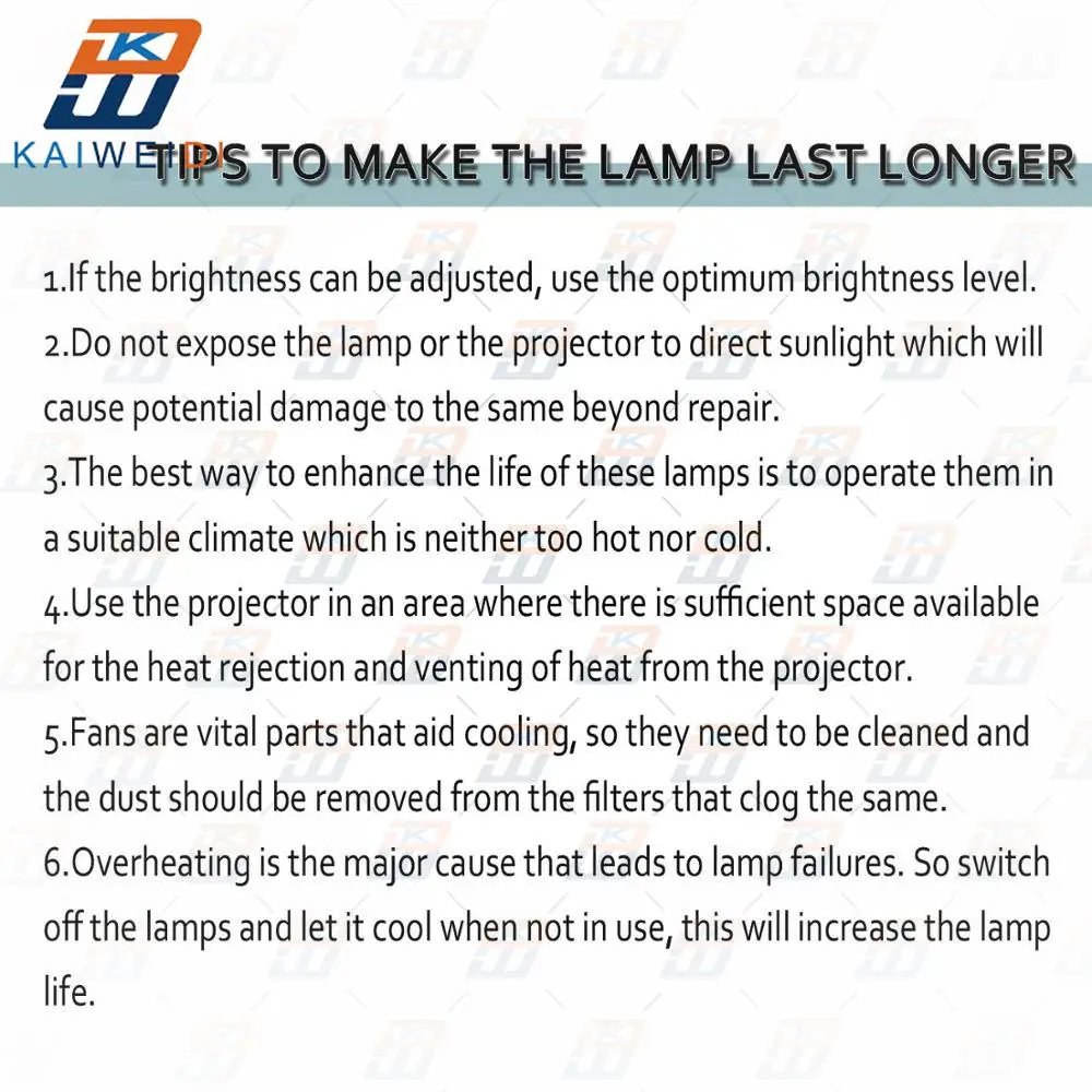 Гарантийный срок:180 дней с момента получения лампы Срок службы: прибл.2000 часов