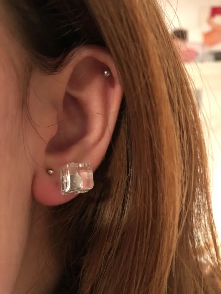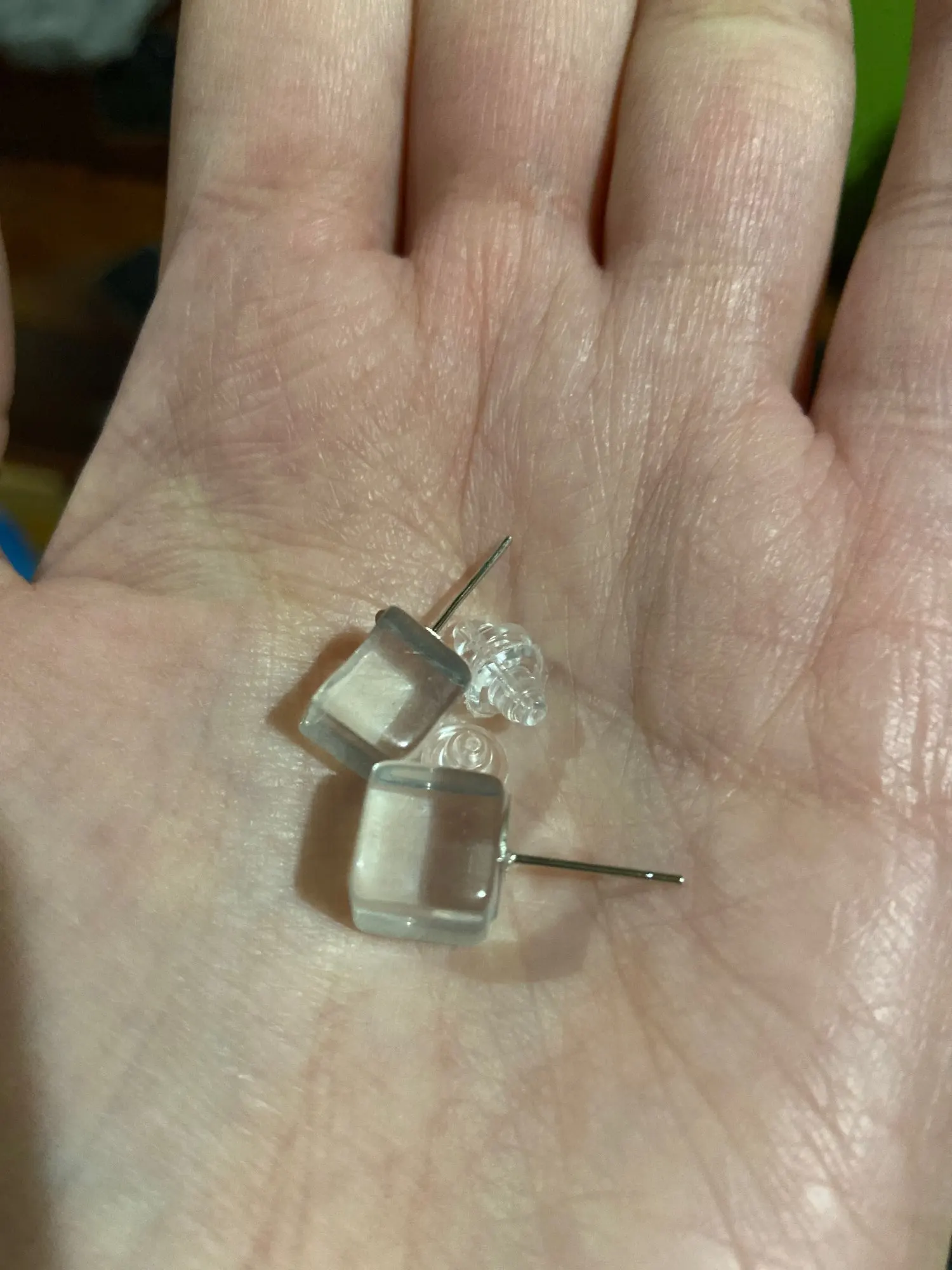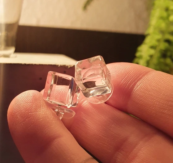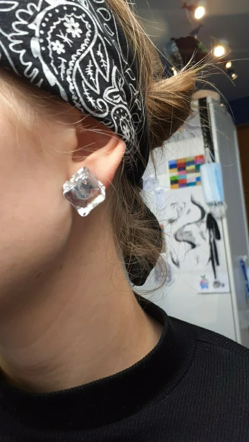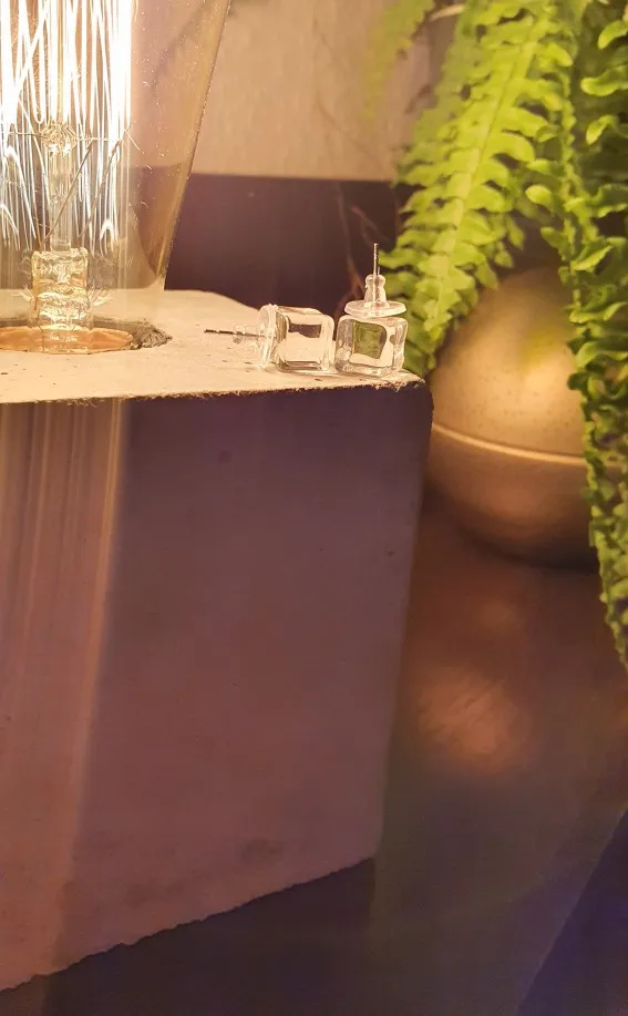 Смотрятся очень дёшево, не кубики, а параллепипеды какие-то. Мутные, тяжелые, выворачивает мочку уха. Не понравились совсем