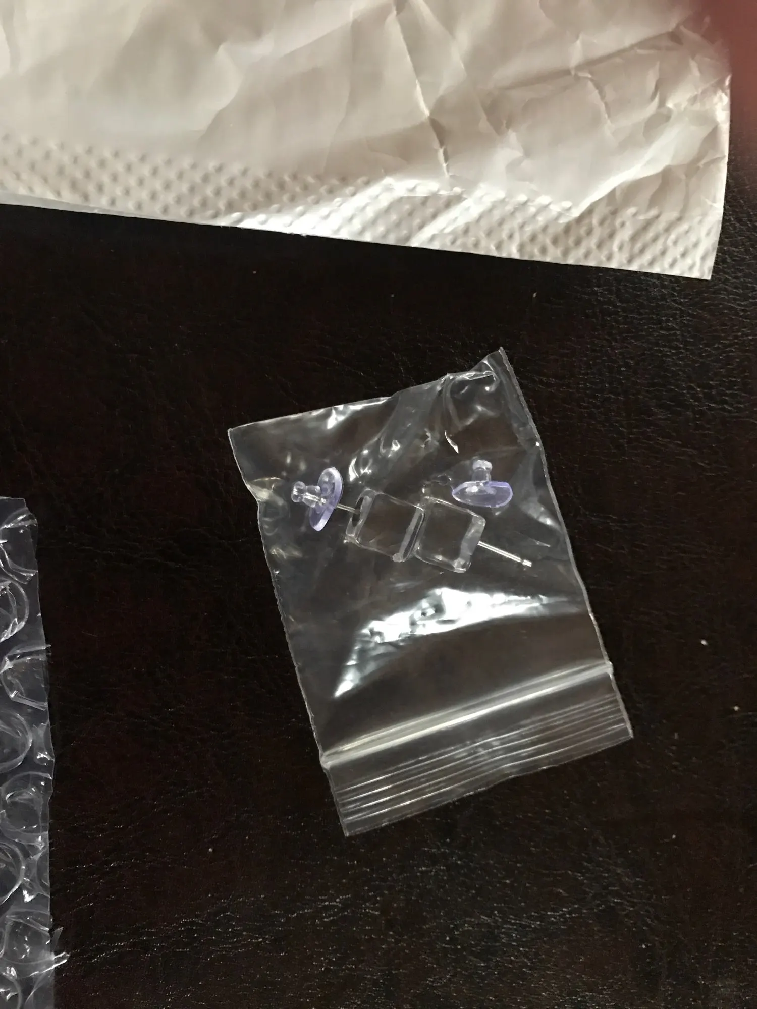 На сережках торчит много клея, замки приклеены криво: на одной по центру, на другой с нижнего края. На одной из сережек вздут остый пузырь.