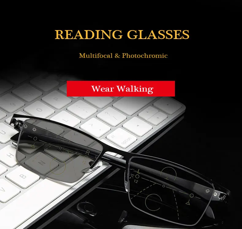 Новые прогрессивные многофокальные фотохромные очки для чтения, мужские очки для чтения с умным зумом, женские очки для чтения с большим приблизительным расстоянием и чехлом