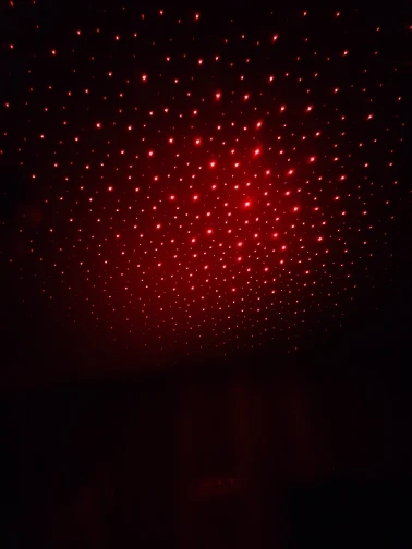 Обычная безделушка. Сделана качественно. Рисунок на потолке формирует как на картинке. Вращая макушку рисунок можно изменять. Лучше подключать где-то в подлокотник иначе слепит.