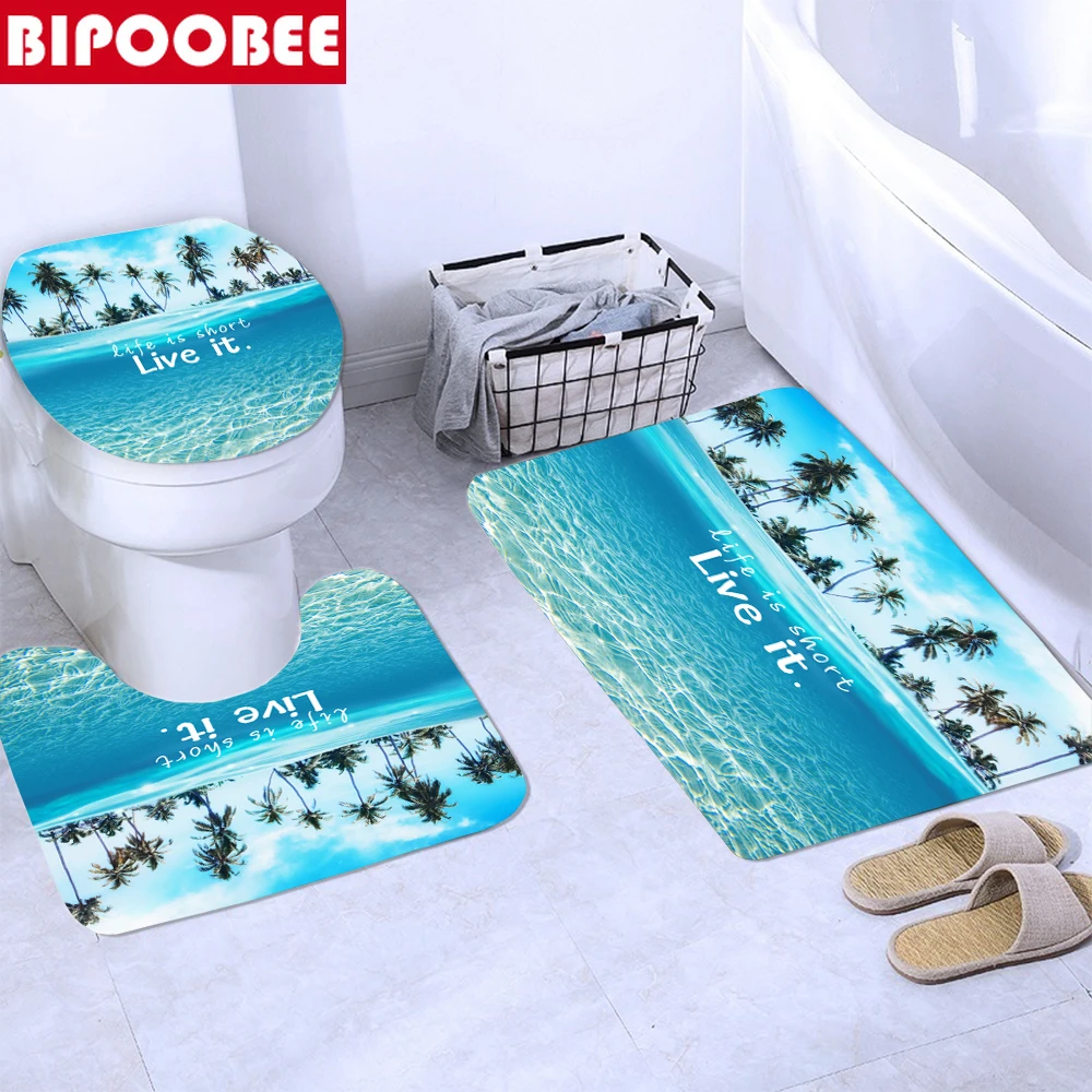 Шторка для душа 4 в 1, синяя морская шторка для ванной, из полиэстера, летняя пляжная подставка, ковер, крышка для туалета, коврик для ванной