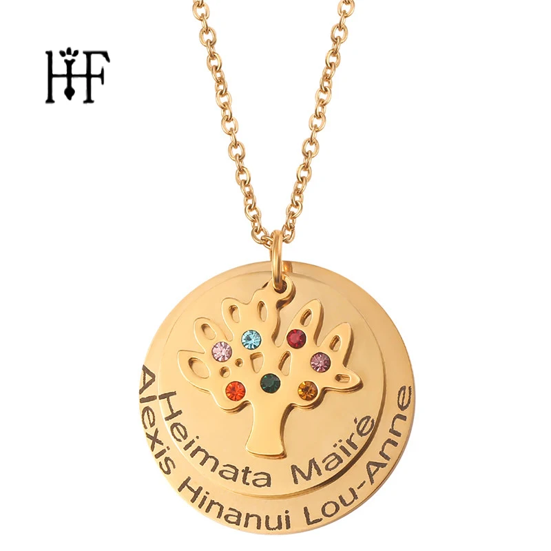 Ожерелье с именем на заказ, ожерелья с деревом жизни, многослойная подвеска в виде круга, золотые ожерелья, подарок для женщин, индивидуальное название 1-5