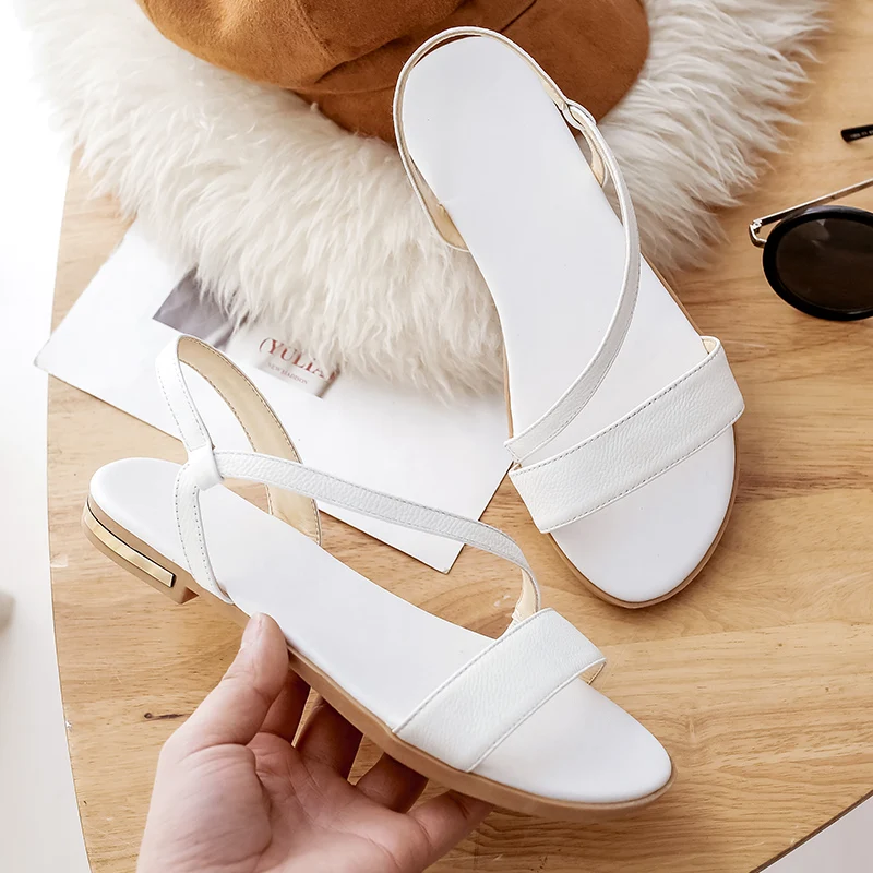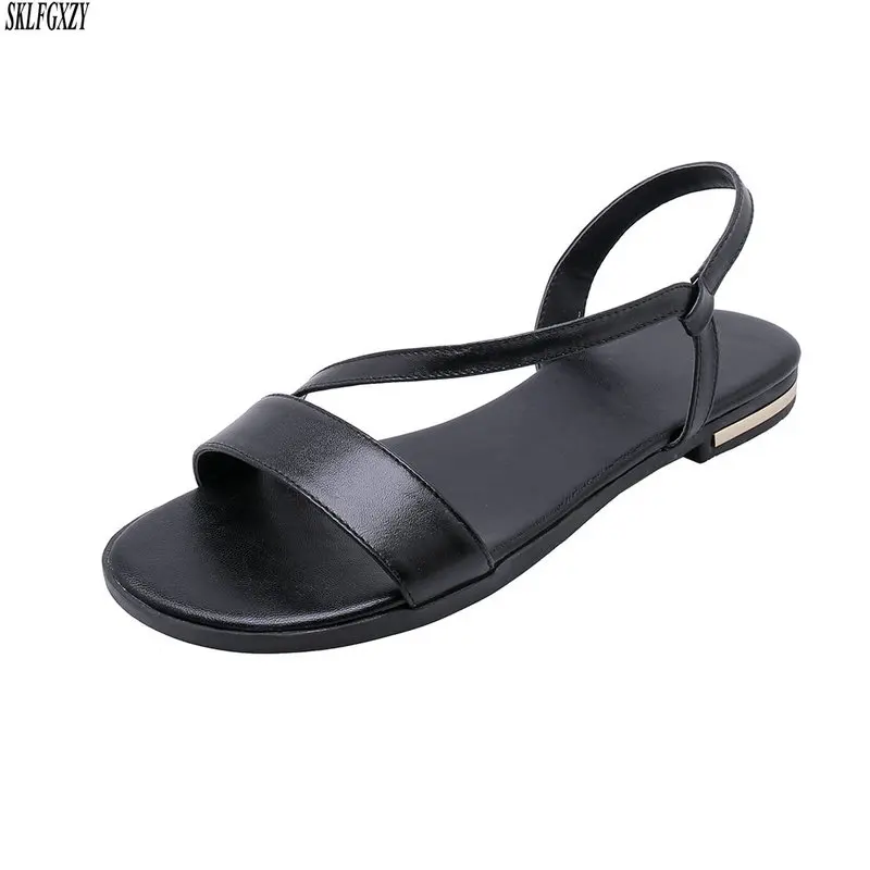 Сандалии женские из натуральной кожи, мягкая дышащая обувь с перфорацией, повседневные пляжные босоножки, размеры 34-46, на лето