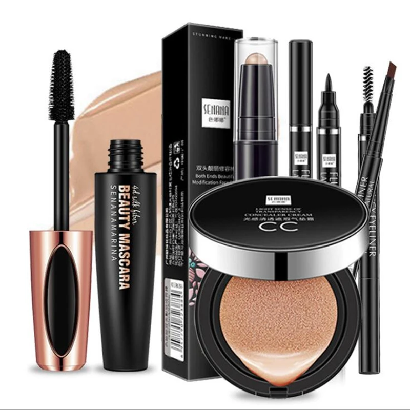 Новый женский брендовый набор для макияжа, модный косметический набор, крем против морщин CC, Водостойкая тушь для ресниц, Волшебная подводка для глаз, очаровательные брови