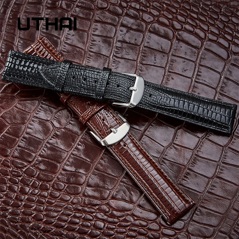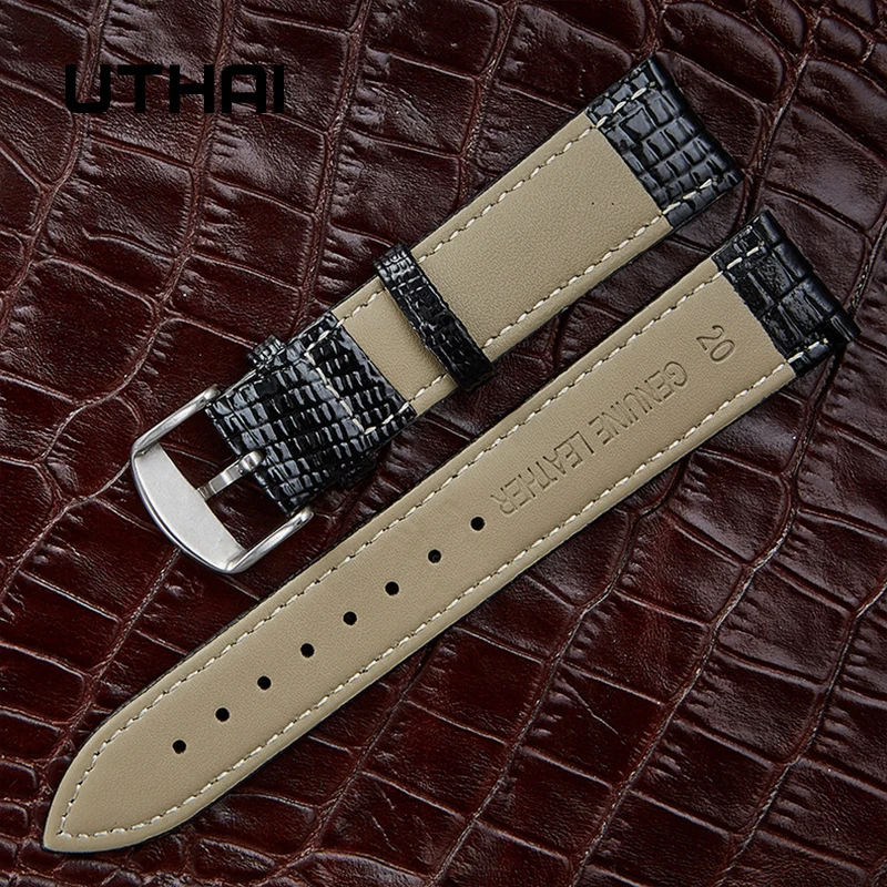 Ремешок для часов UTHAI P38 из Кожи Ящерицы, аксессуары для наручных часов, высококачественные глянцевые Водонепроницаемые кожаные часы, 12-24 мм