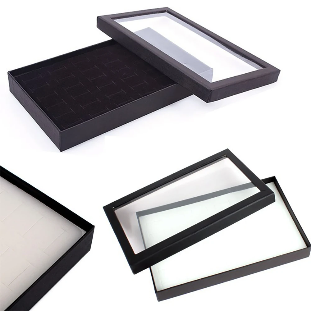 Шкатулка для ювелирных украшений Прозрачная с 36 отделениями, держатель для колец, коробка для хранения сережек, органайзер, черный органайзер для ювелирных украшений, шкатулка