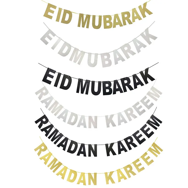Количество: 1 комплект, как на картинке.Цвет: Золотой, розовое золото, черный, серебристыйМатериал: бумагаРазмер: как на картинкеПисьмо: ИД Мубарак, Рамадан КаримИспользование: EID MUBARAK баннер
