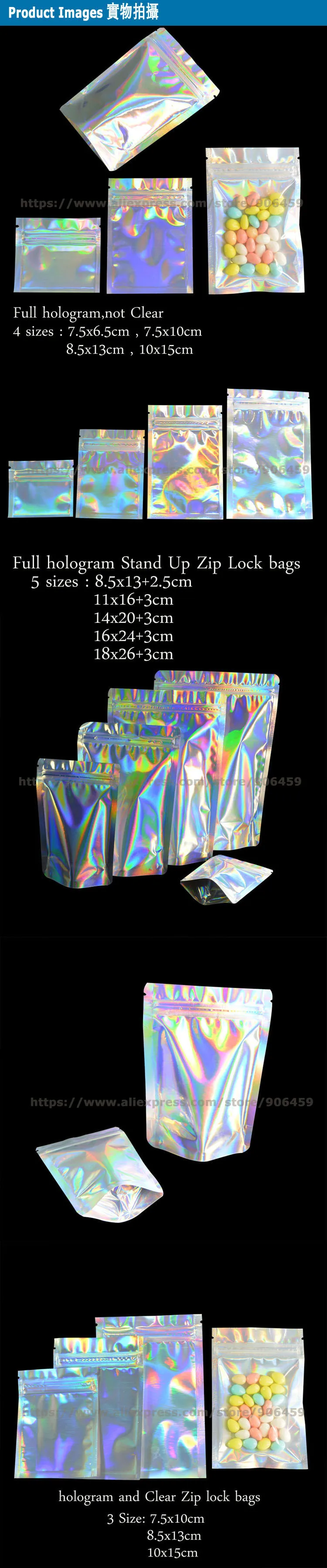 100 шт. мешки замка застежка-молнии звезда голограмма Алюминий Фоль...