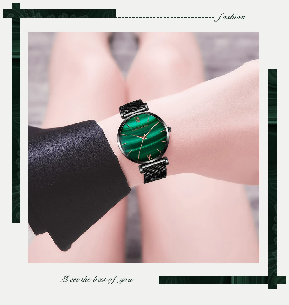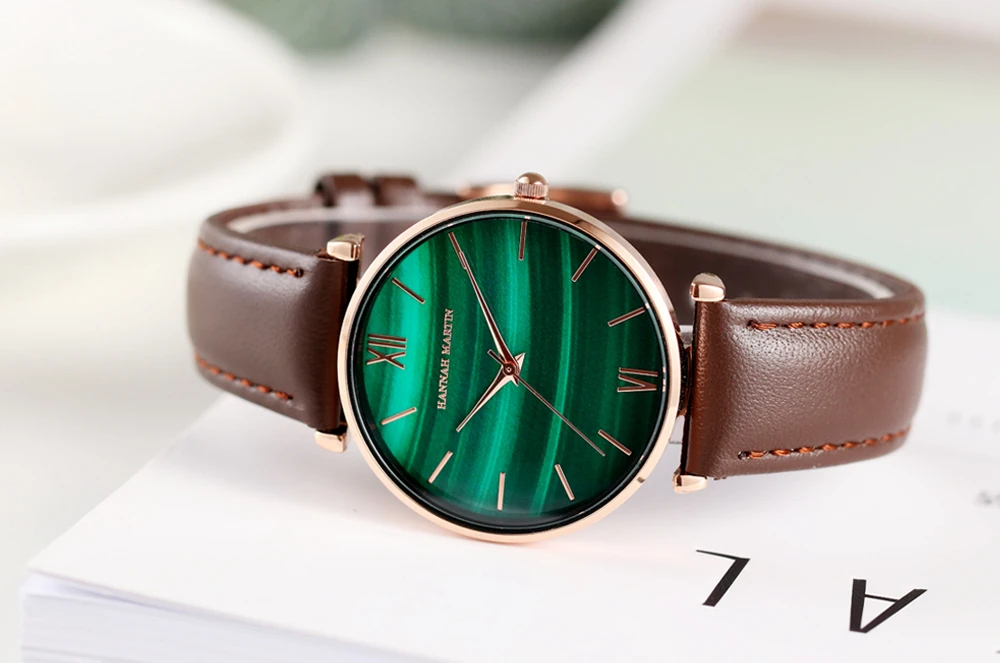 Часы женские кварцевые с зеленым циферблатом, японские водонепрониц...
