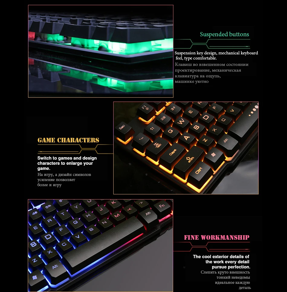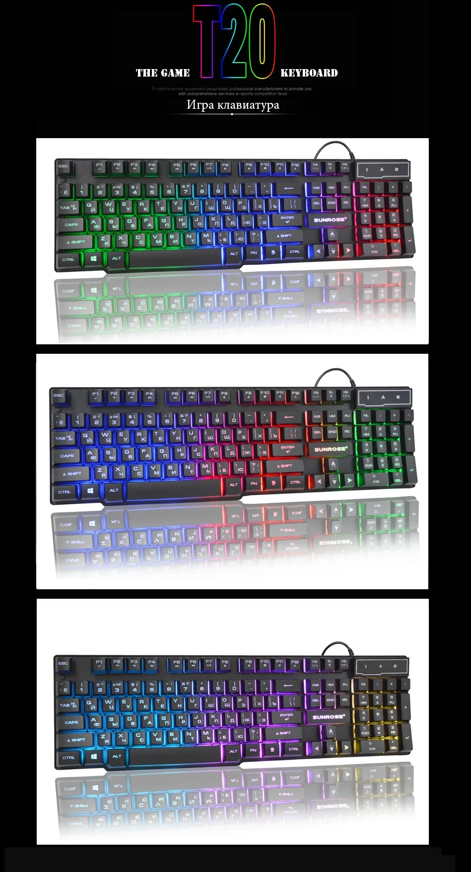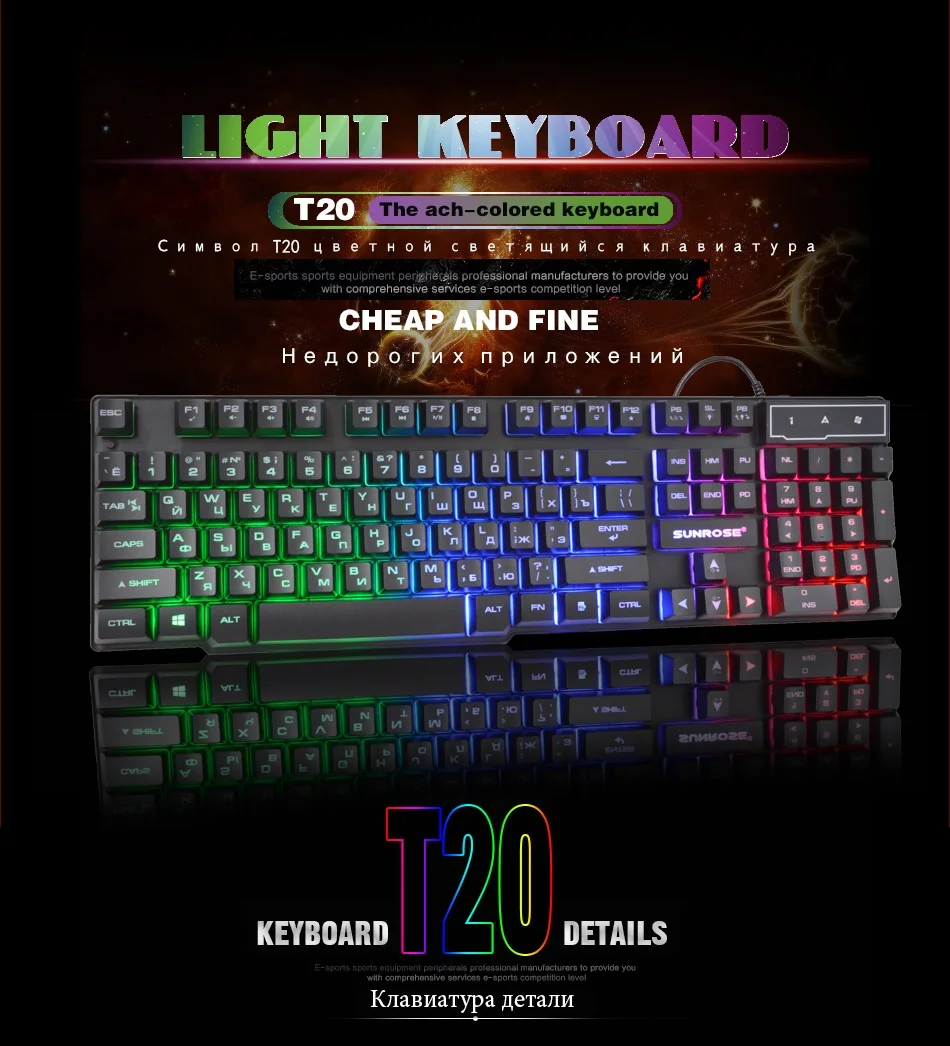 Тип продукта: Стандартная Люминесцентная клавиатураИнтерфейс: Проводной USBНомер ключа: 104 клавишТип провода: пластиковая медьПодсветка: RGBКрышка ключа: мелкий песчаныйКлавиатура: силиконВодонепроницаемость: крышка ключа подвески + отверстие для направляющей жидкостиПоддержка системы: Windows xp/Vista/Win7/8/10 Mac OS XВес нетто: 510 гРазмер: 442*133*30 ммДлина провода: 130 см