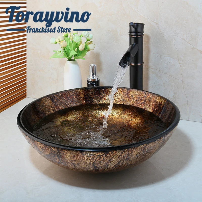 Круглая раковина ручной работы для ванной комнаты с выдвижным сливом badkamer wastafel черное закаленное стекло крепление на раковину смеситель набор