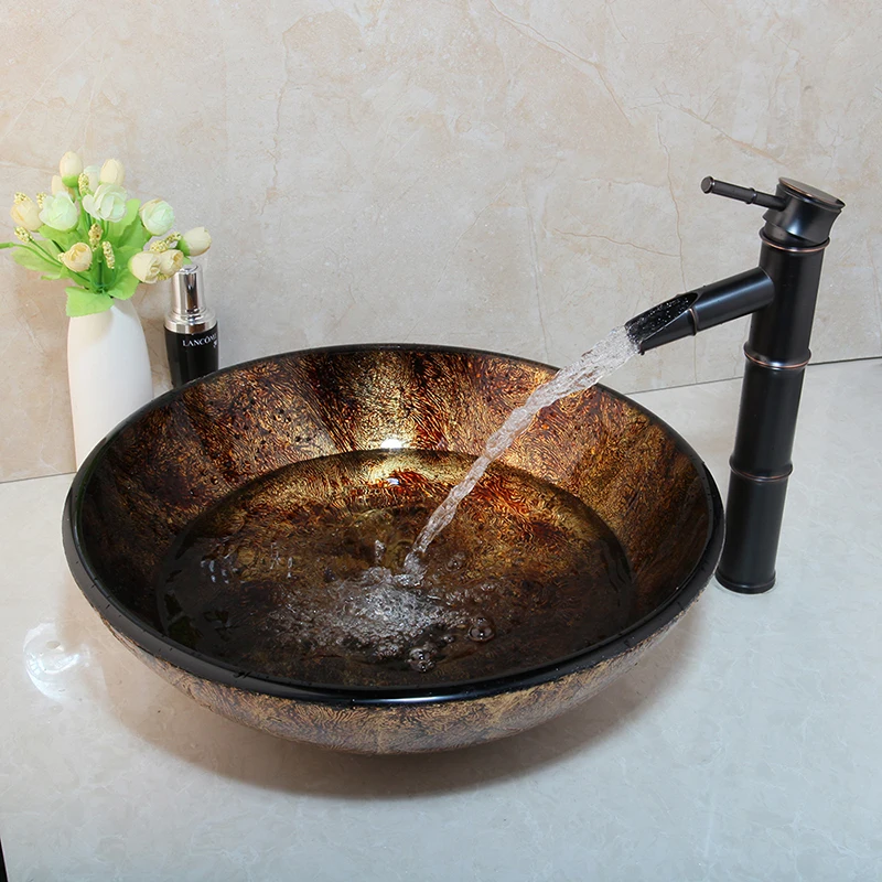 JIENI умывальник круглый стеклянный сосуд Раковина кран стеклянная ...