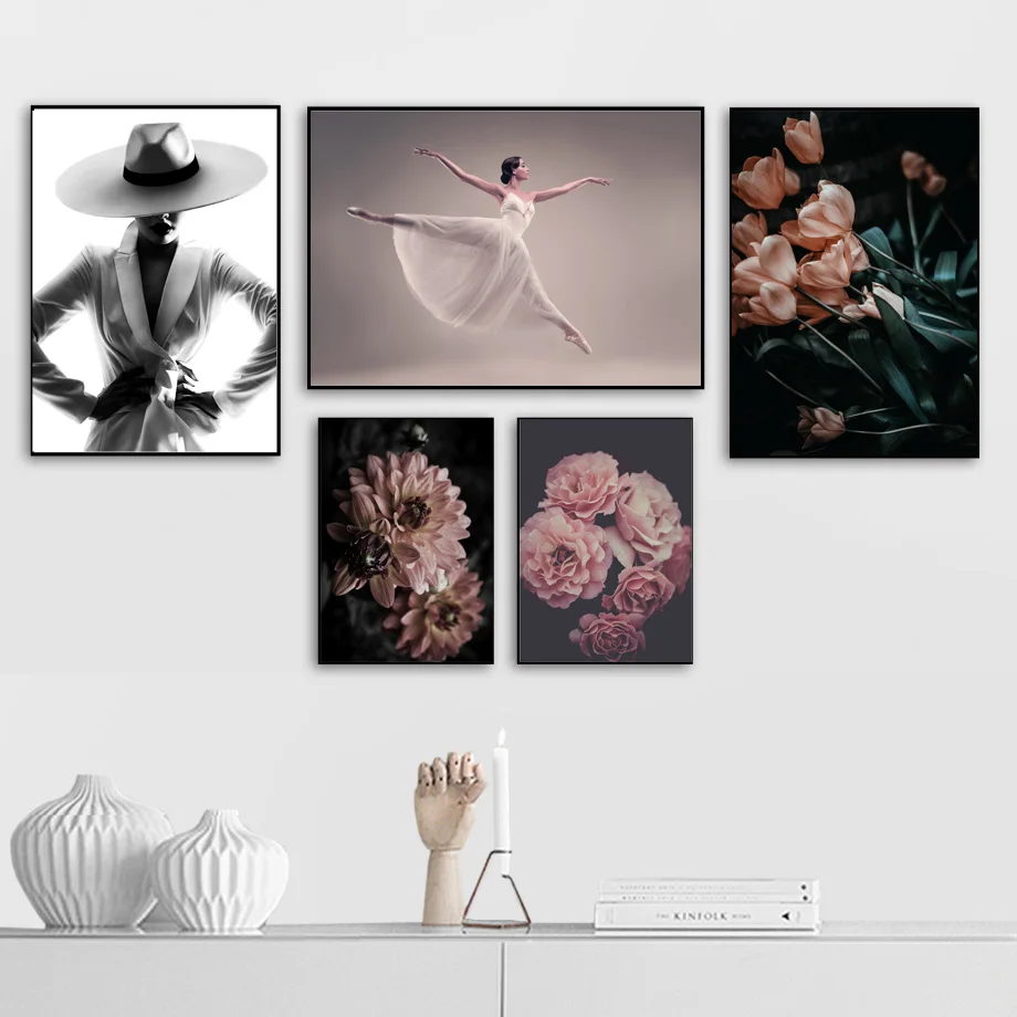 Мода танцующая женщина цветок листья любовь стены Искусство Холст Живопись скандинавские плакаты и принты настенные картины для декора гостиной