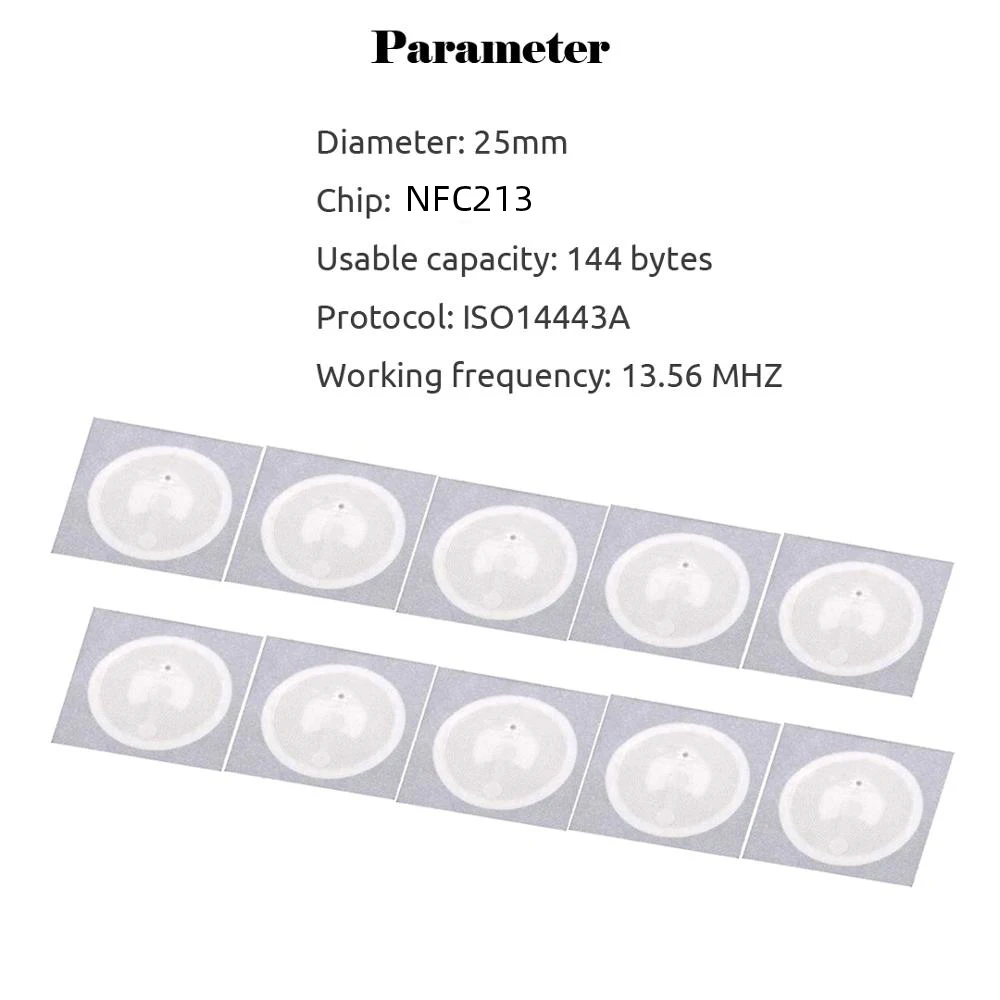 Чип: NFC213 Полезная емкость: 144 байта Протокол: ISO14443A Рабочая частота: 13,56 МГц Расстояние чтения и письма: от 1 до 5 см Время чтения и письма: от 1 до 2 мс Рабочая температура: от-20 до 55 градусов, влажность 90% Время стирания: > 100000 раз Хранение данных: > 10 лет Время чтения: 100000 раз Диаметр: 25 мм Упаковочные материалы: PE самоклеющаяся + бумага с покрытием Примечание: у нас есть 500 шт/рулон 1000 шт/рулон 2000 шт/рулон, если нужно отправить в рулонах, пожалуйста, заказывайте с несколькими 500 шт, И оставьте сообщение в примечании для заказа «отправить в рулонах»