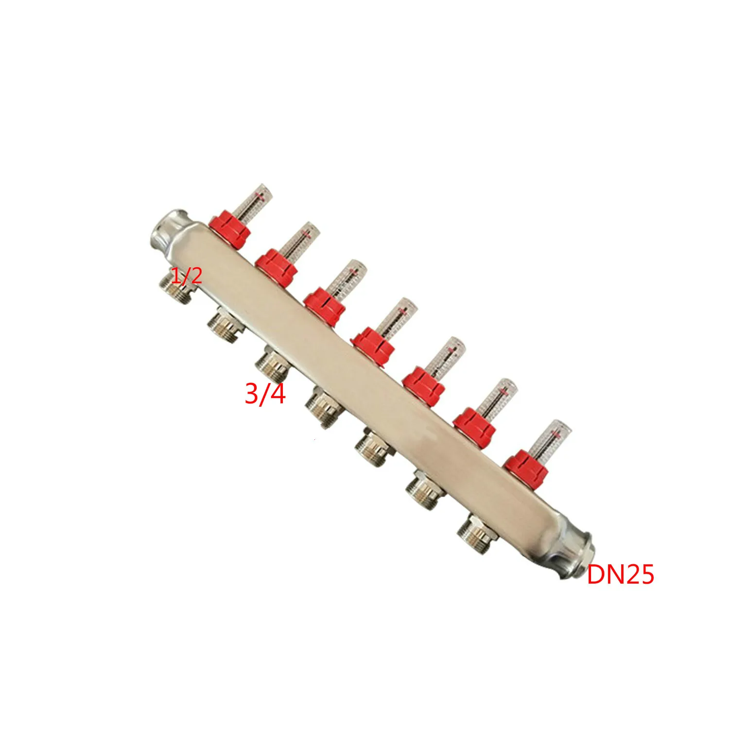 1 "(DN25)* 12"(DN15) распределительный коллектор воды из нержавеющей стали с потоком для системы теплого пола (2-10 порт)