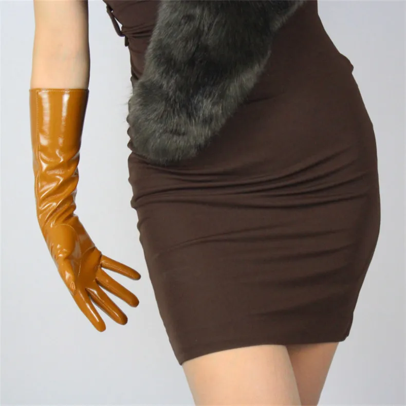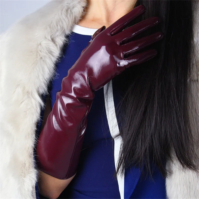 Женские длинные перчатки из искусственной лакированной кожи, женски...