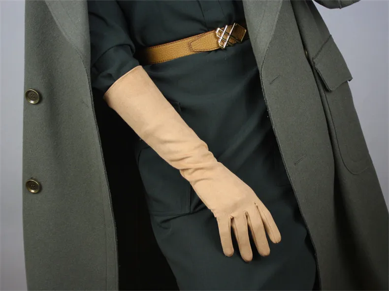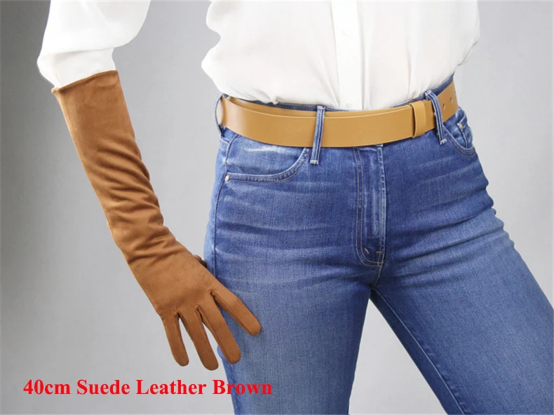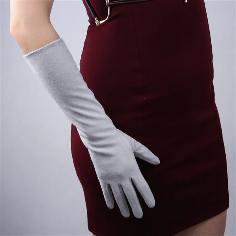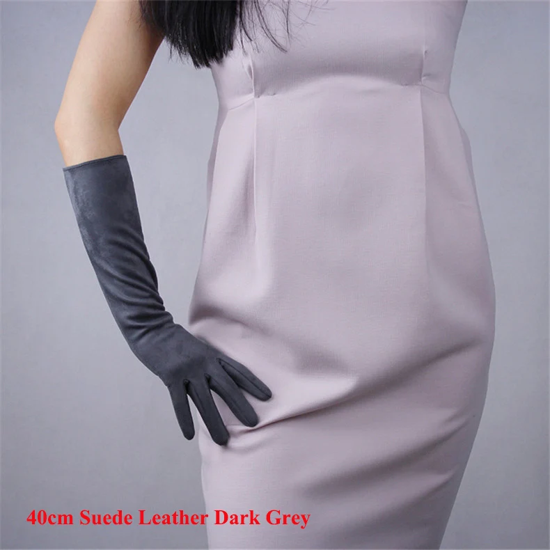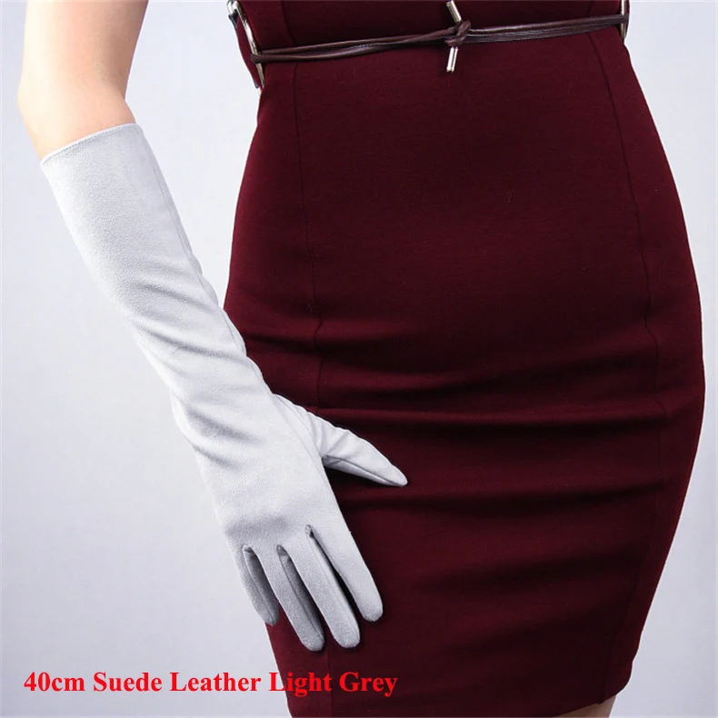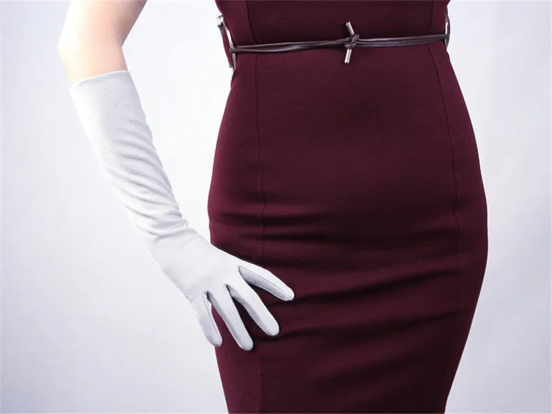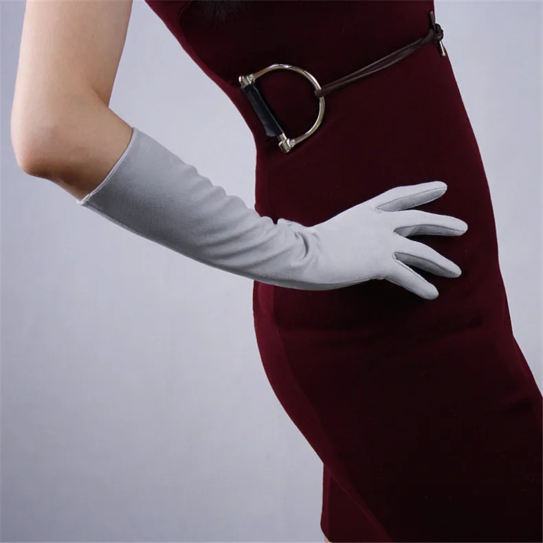 Модные длинные кожаные перчатки для женщин 60 см, очень длинные сер...
