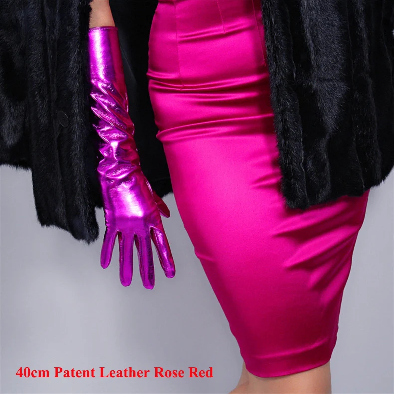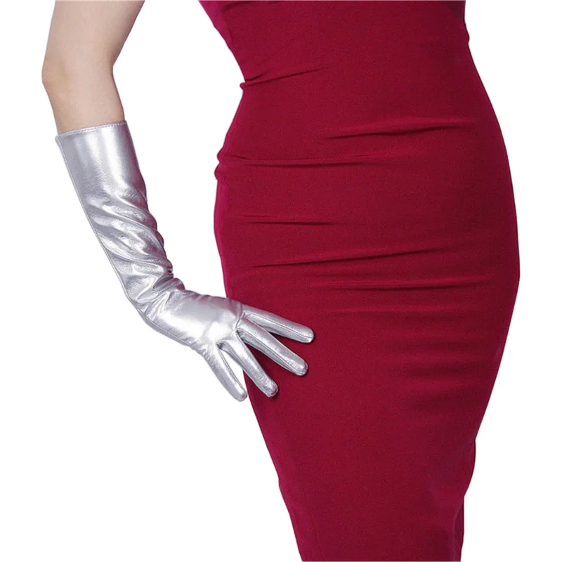 40 см лакированная кожа Серебряные перчатки длинные секции искусственная кожа Теплые Яркие Кожаные зеркальные Металлические Блестящие женские Фотообои