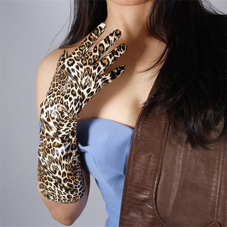 Женские Длинные латексные перчатки с леопардовым принтом, перчатки ...